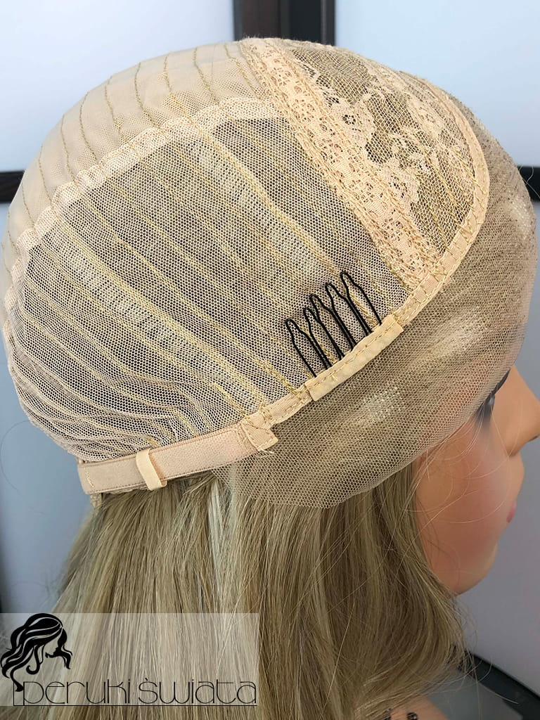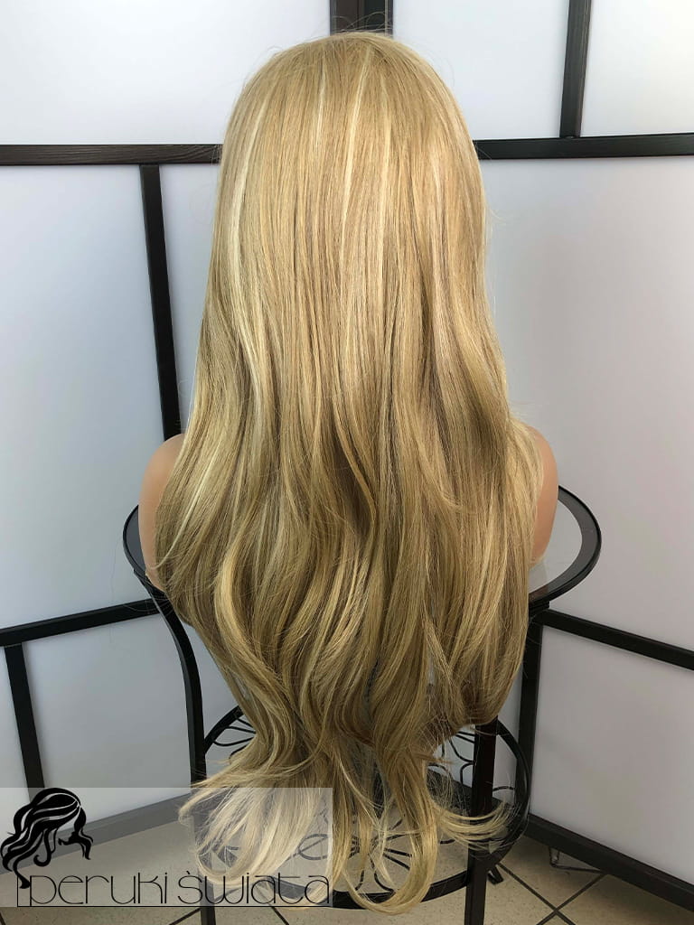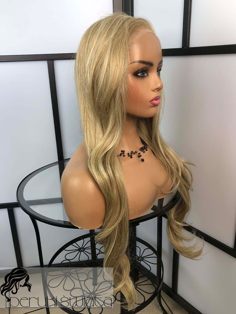 Peruka syntetyczna Deborah, czepek typu: full lace, kanekalon termoplastyczny, słoneczny blond z chłodnymi blond pasemkami
