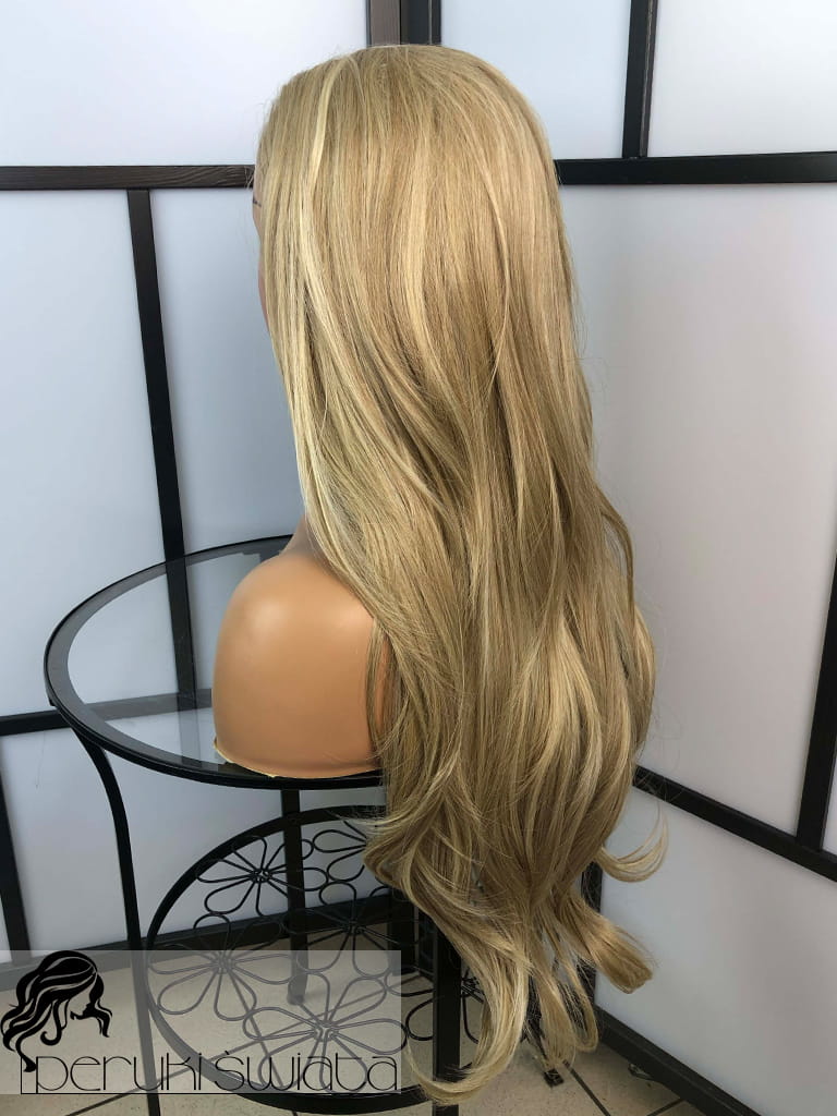 Model Lisa, peruka syntetyczna, monotop, kanekalon, fale, kolor: ciepły słowiański blond na odroście