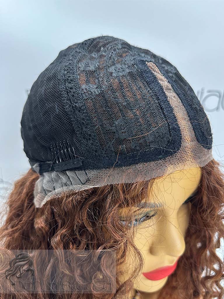 Typ czepka:lace front (efekt wyrastania włosów z głowy), przedziałek z siateczki na środku czepka