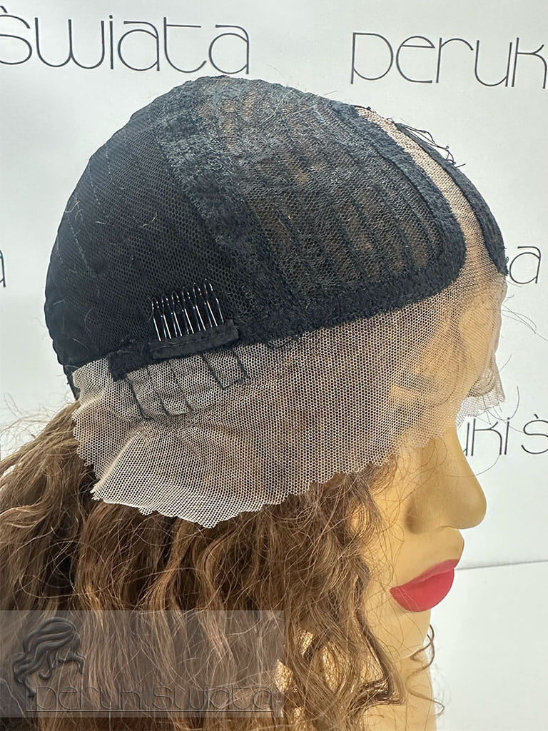 Typ czepka:lace front (efekt wyrastania włosów z głowy), przedziałek z siateczki na środku czepka