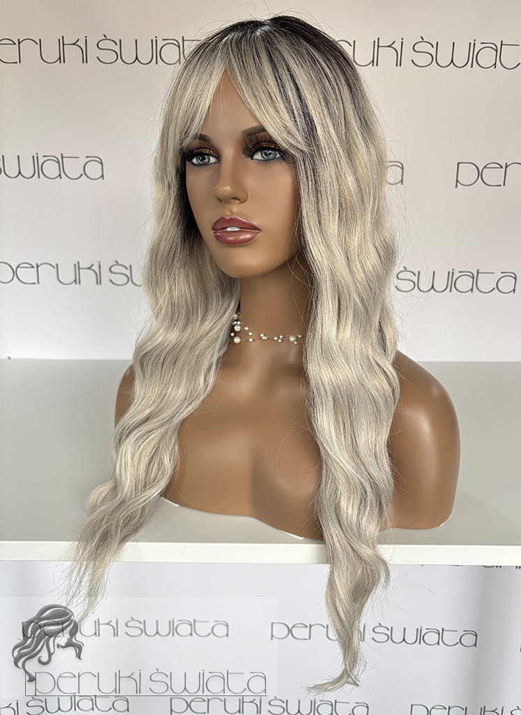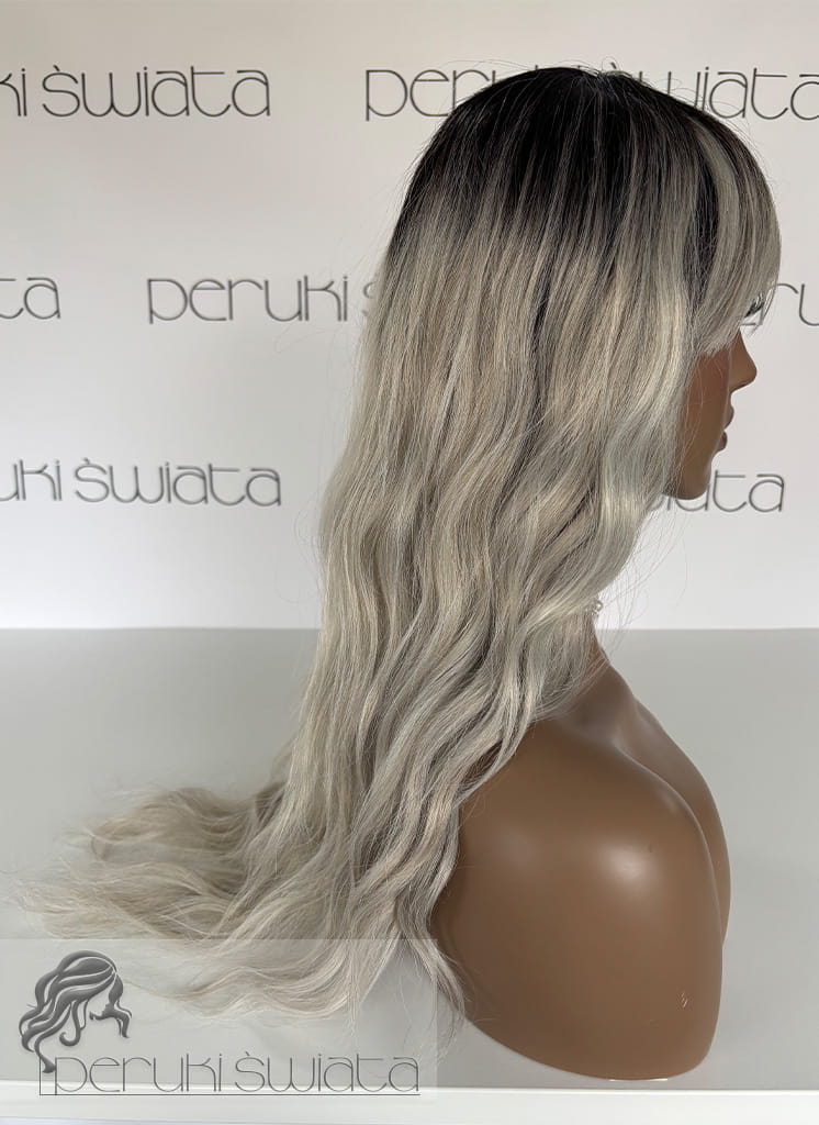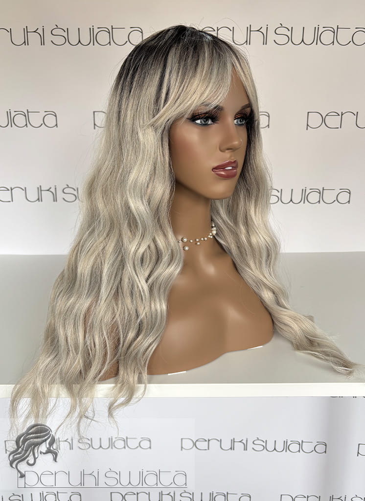 Peruka syntetyczna Selva, kanekalon termoplastyczny, fale, kolor: jasny popielaty blond na odroście