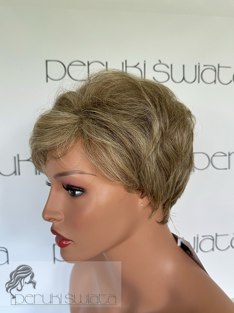 Peruka syntetyczna Serena, włosy krótkie, kanekalon typu "true hair", kolor: średni słowiański blond z refleksami