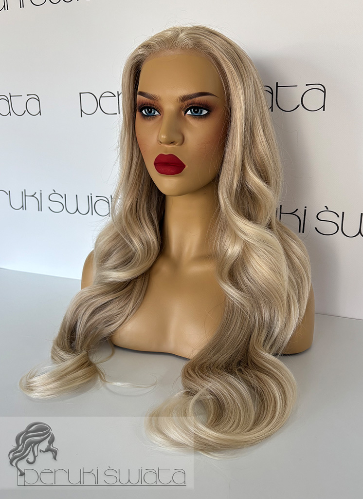 Peruka syntetyczna Simone, czepek typu: full lace, kanekalon termoplastyczny, jasny blond