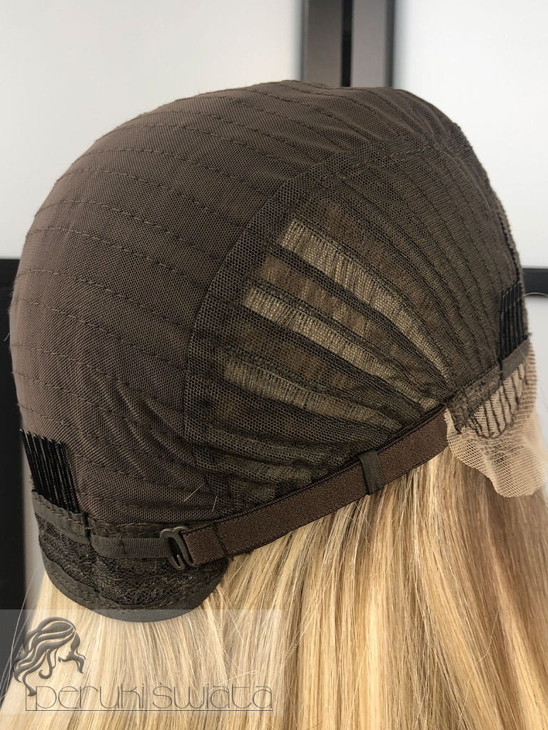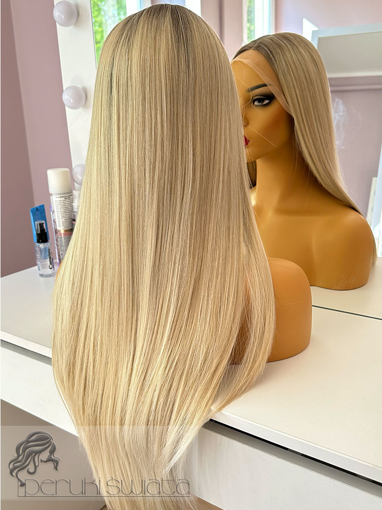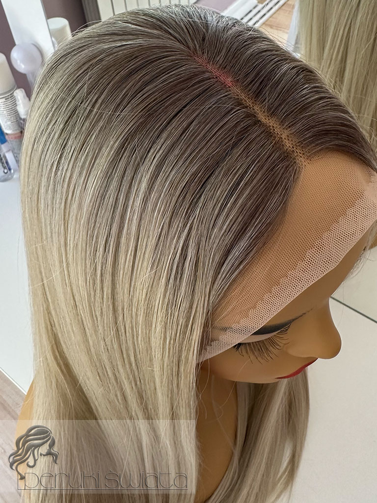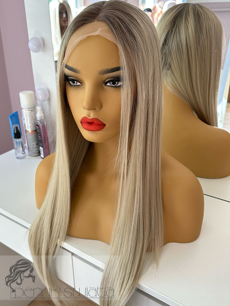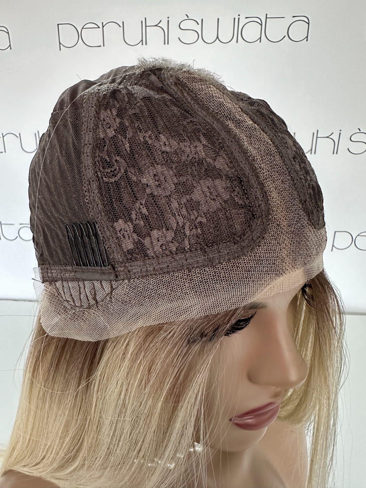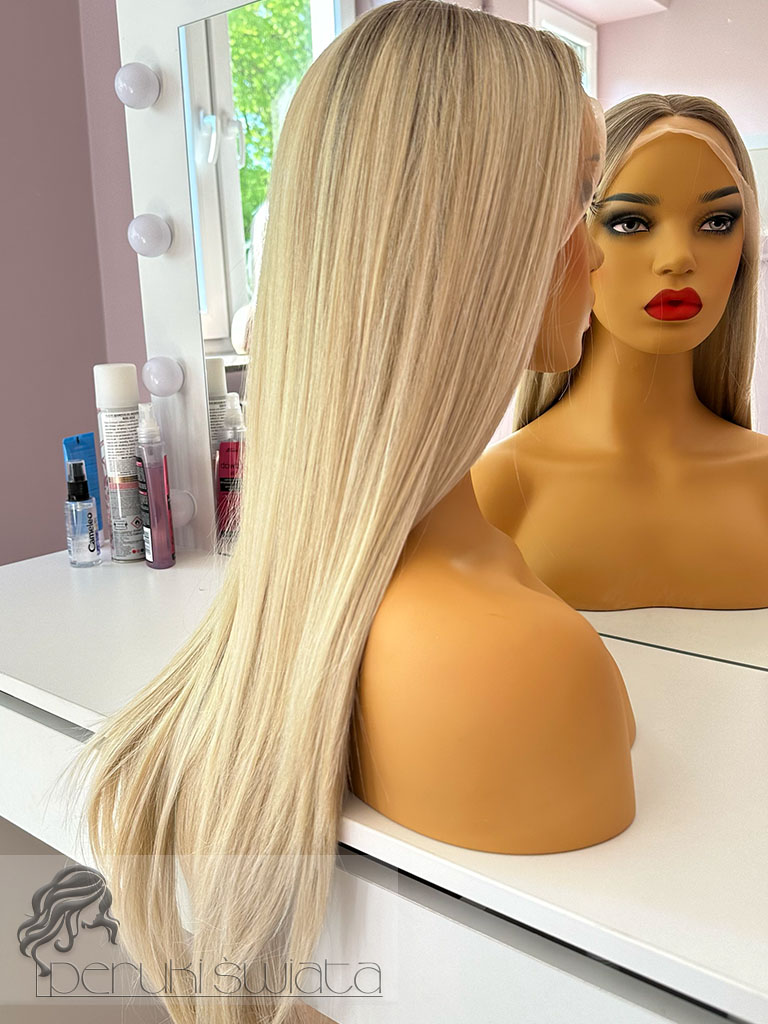 Peruka syntetyczna Sonia, kanekalon japoński, jasny chłodny blond z odrostem