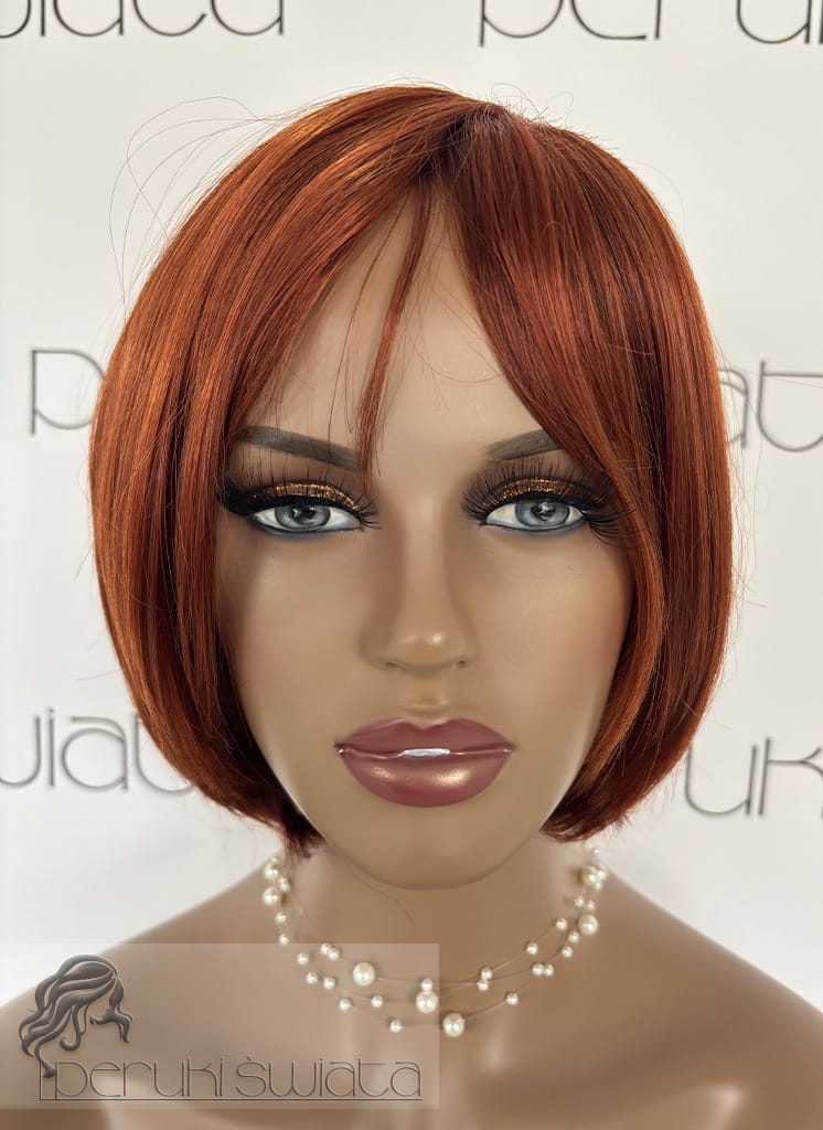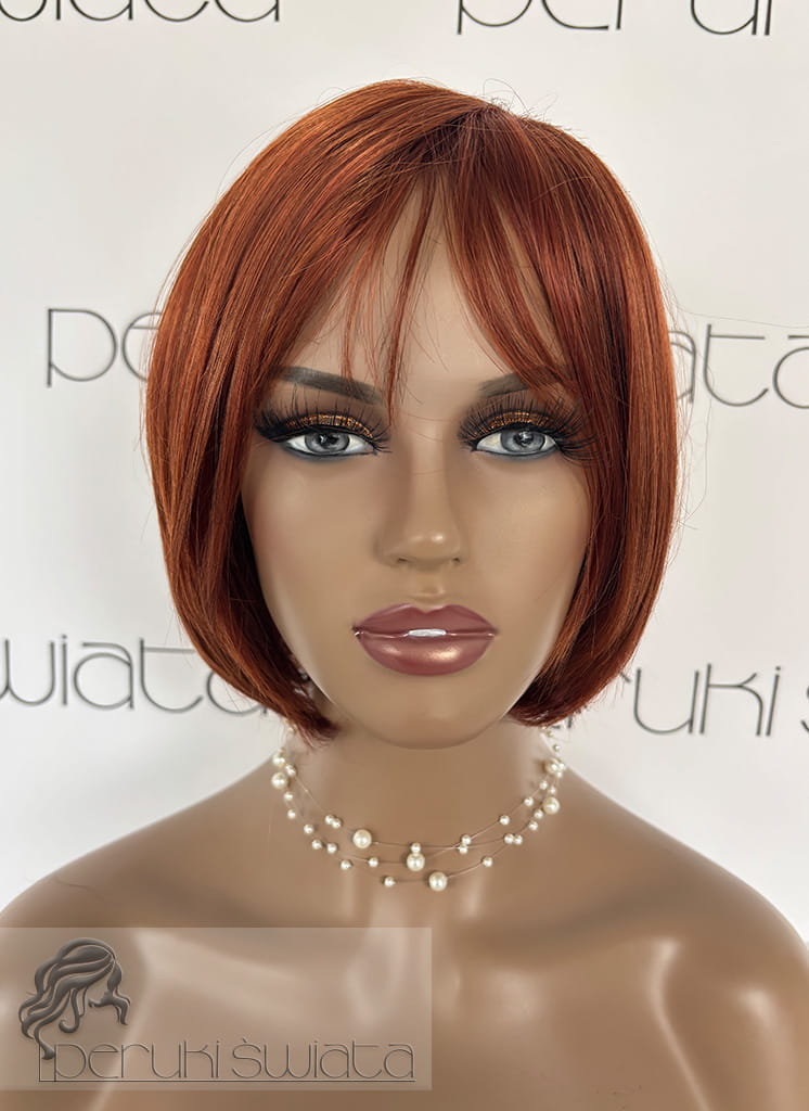 Peruka syntetyczna Stella, bob z grzywką, kolor: rudy kasztan