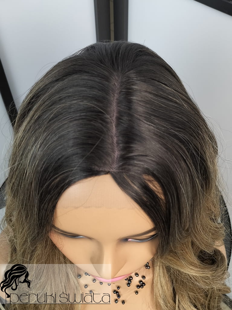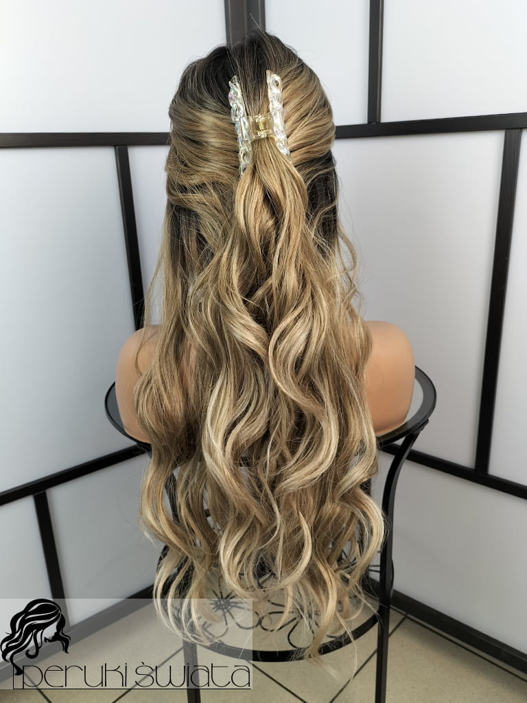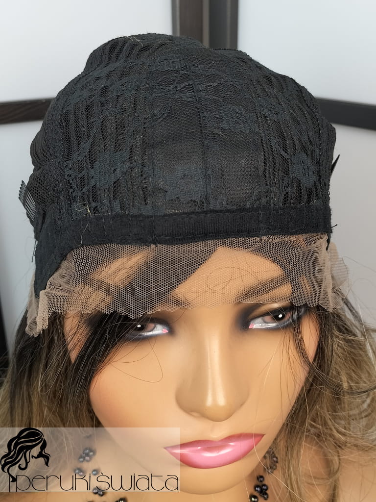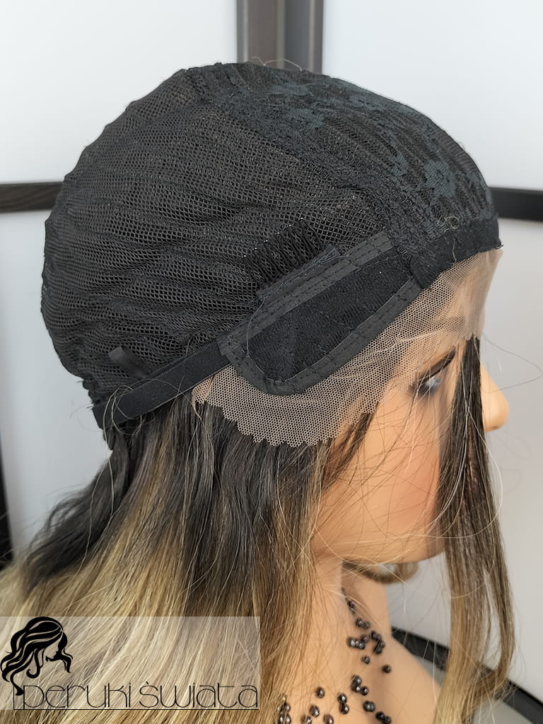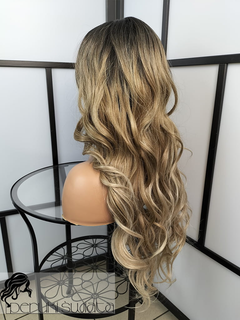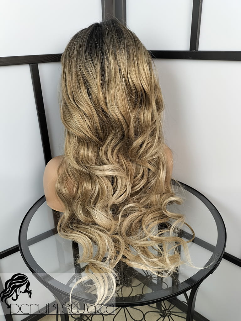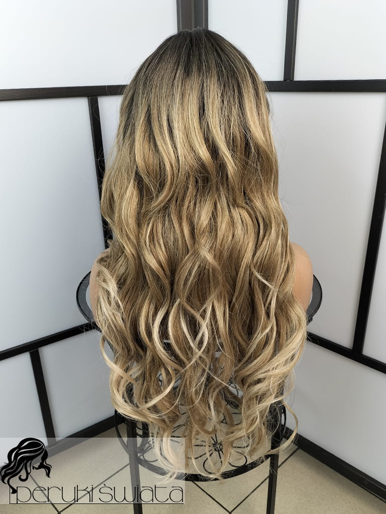 Peruka syntetyczna Summer, kanekalon termoplastyczny, ombre mix blondów na ciemnym odroście