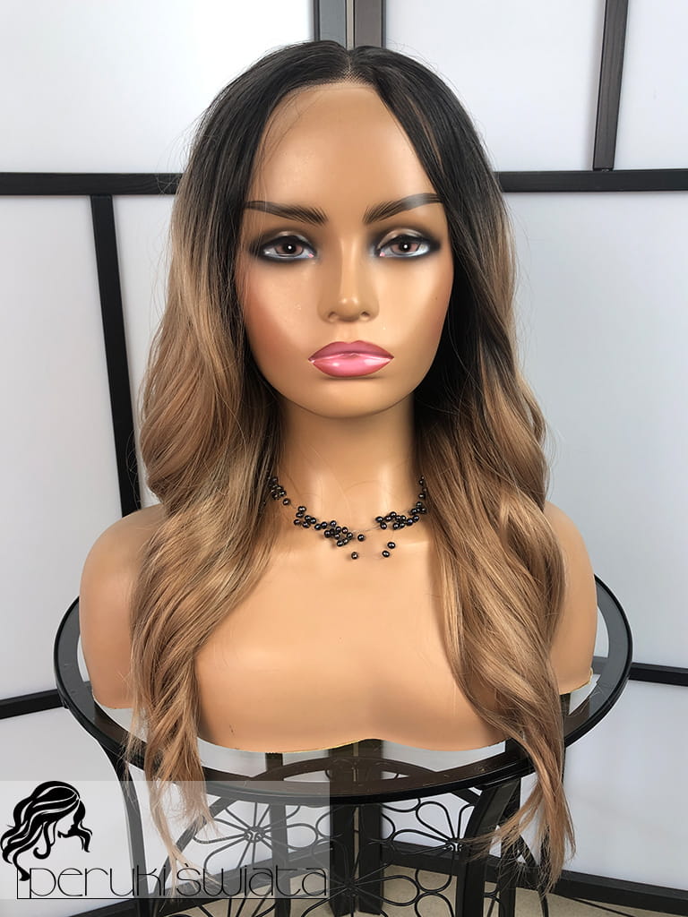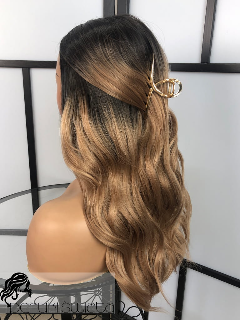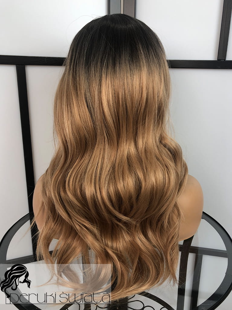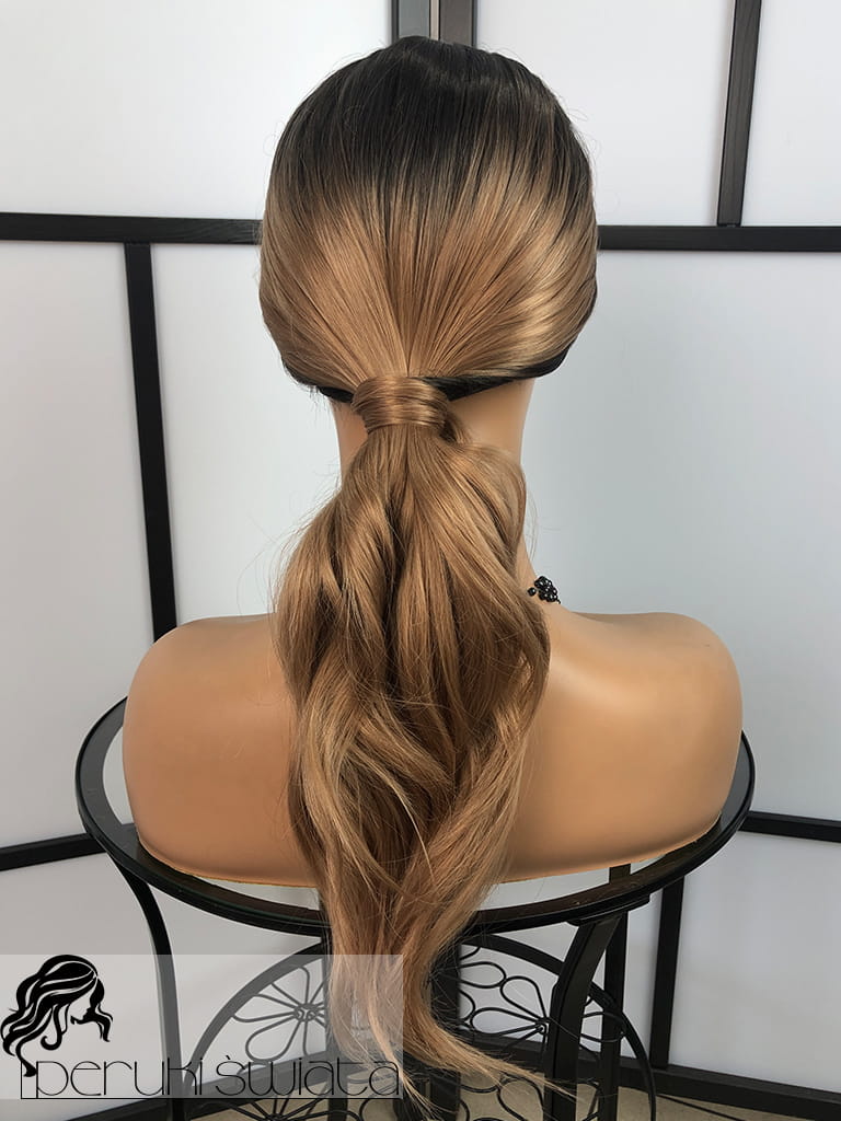 Peruka syntetyczna Tasha, kanekalon termoplastyczny, fale, kolor: karmelowy blond na odroście