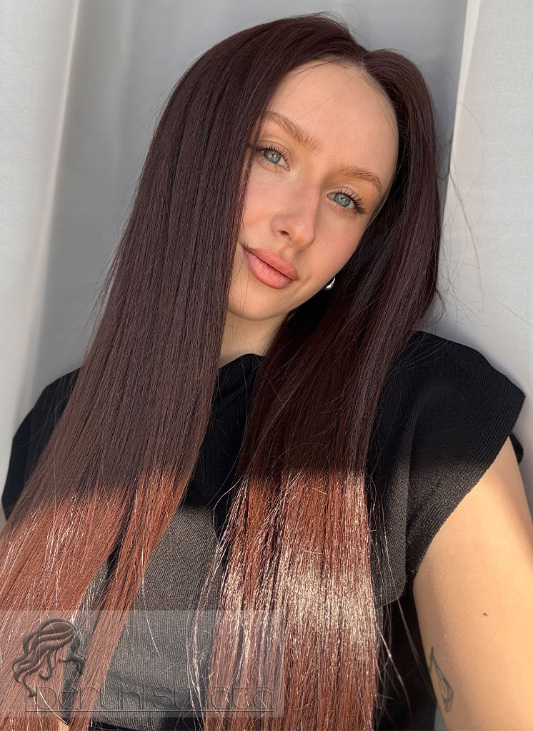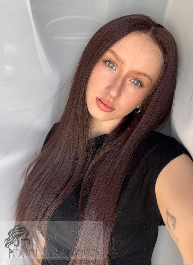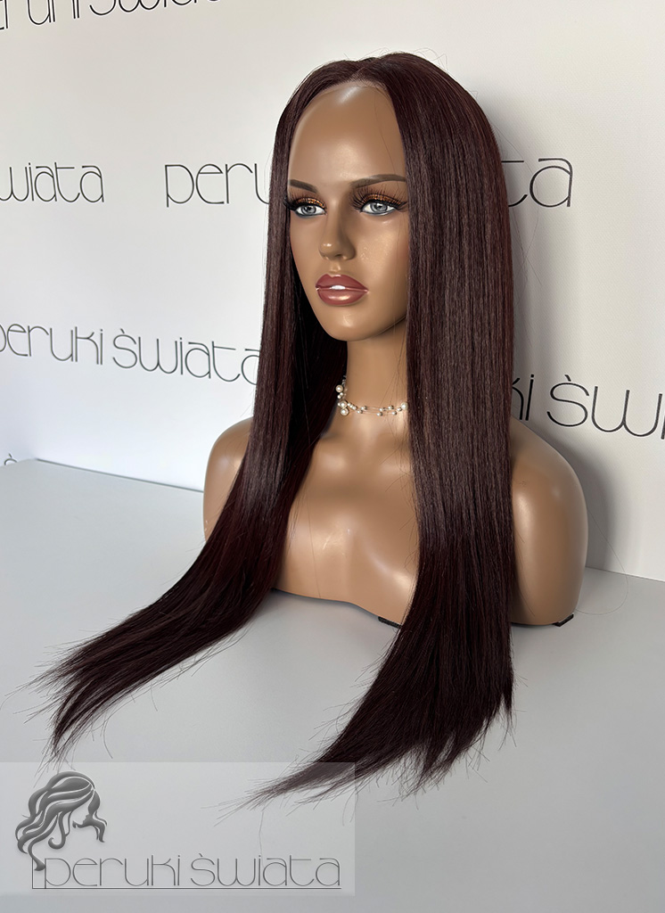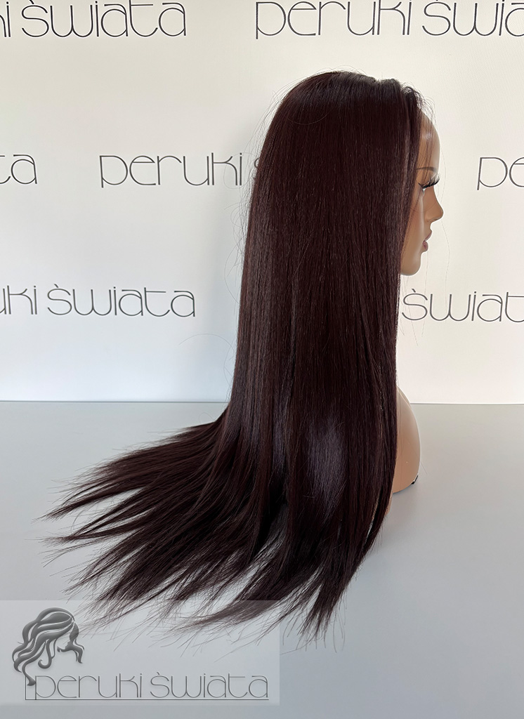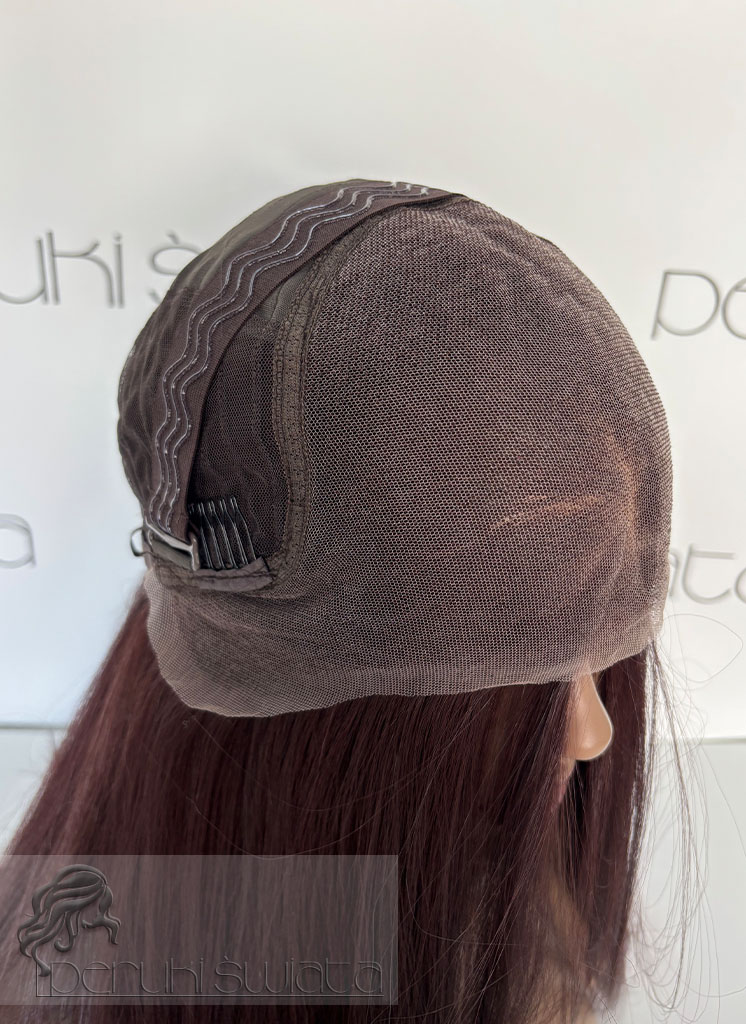 Peruka syntetyczna Tina, czepek typu: full lace, kanekalon termoplastyczny, burgundowy brąz