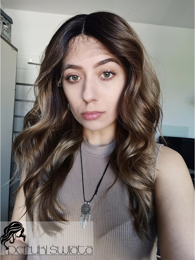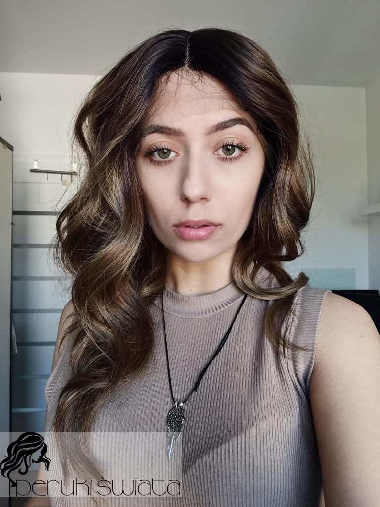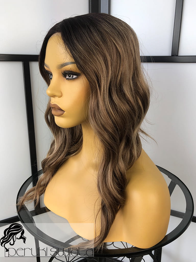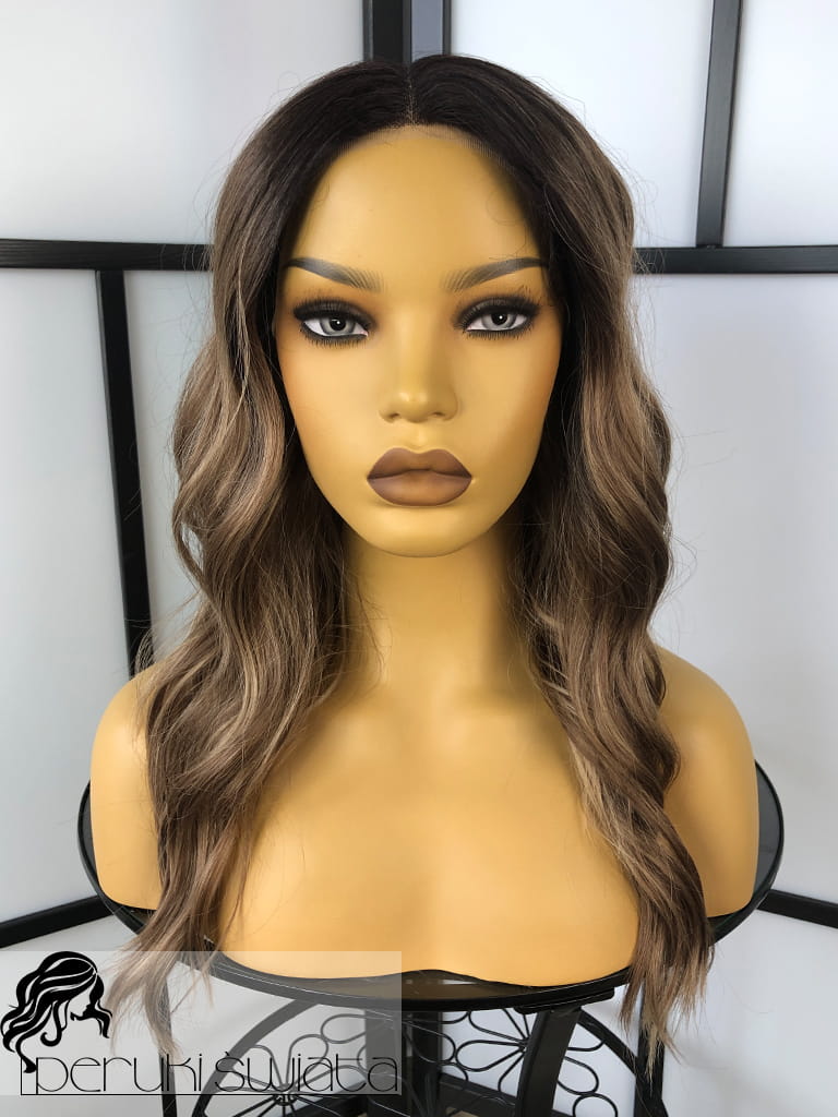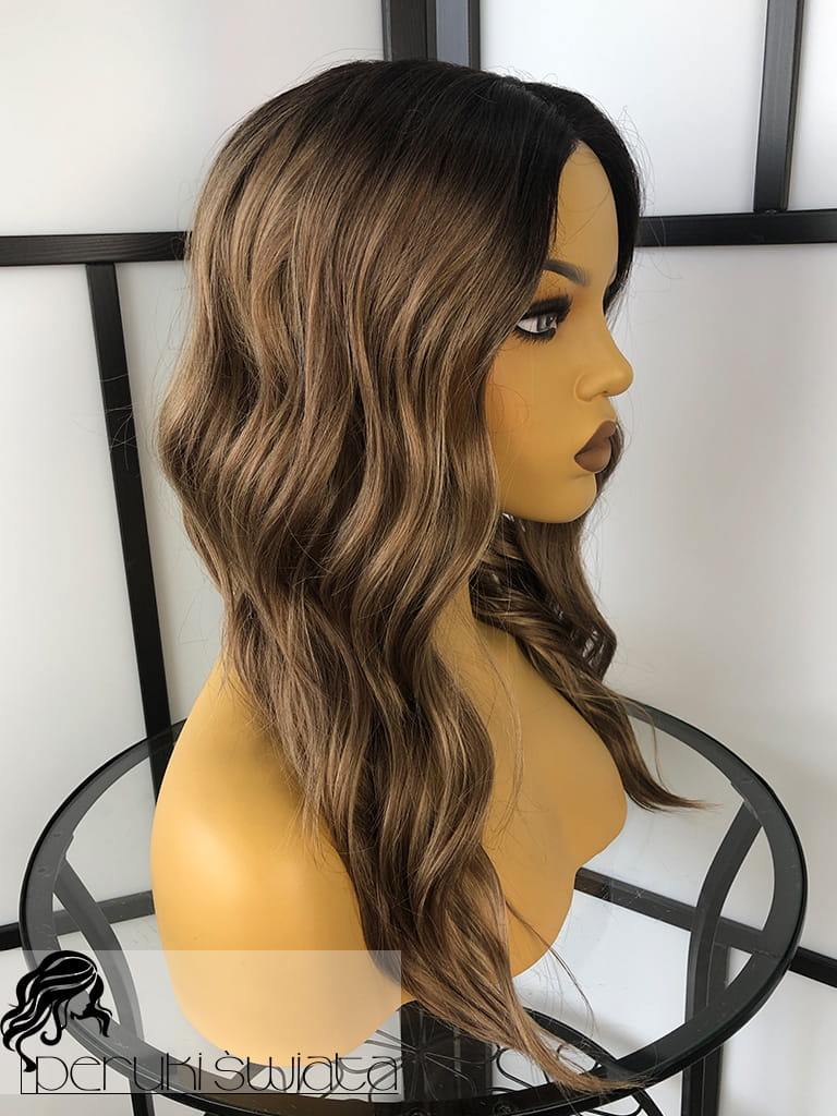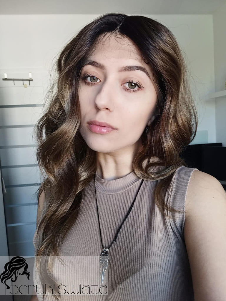 Peruka syntetyczna Wera, kanekalon termoplastyczny, fale, kolor: brąz z refleksami blondu