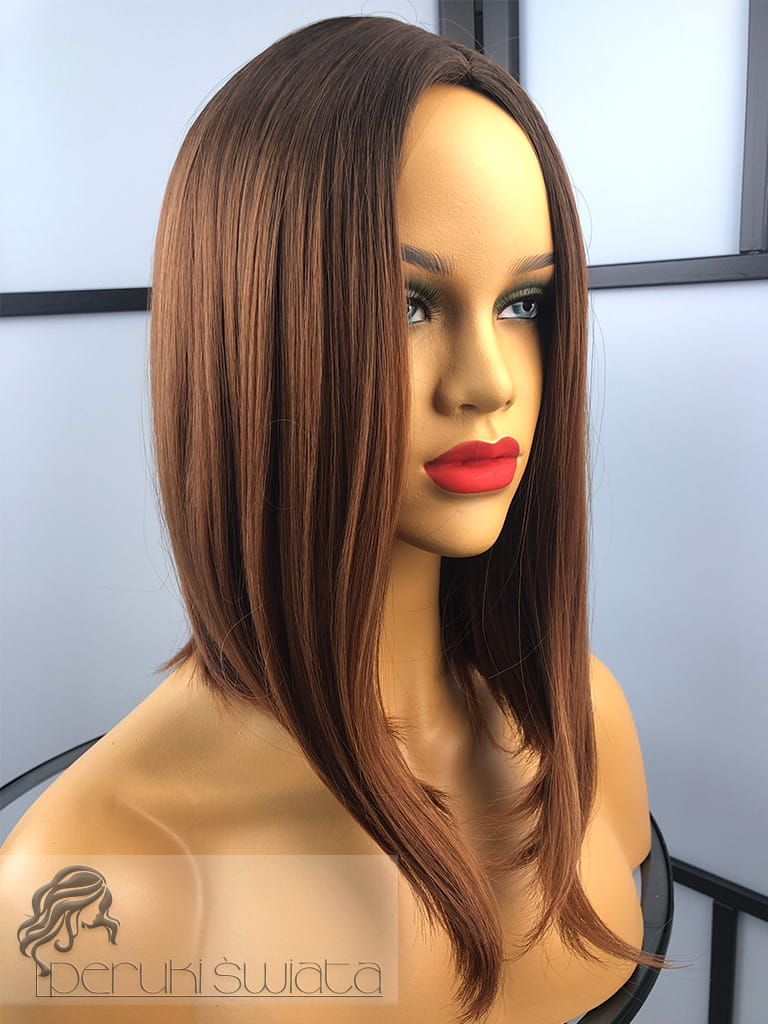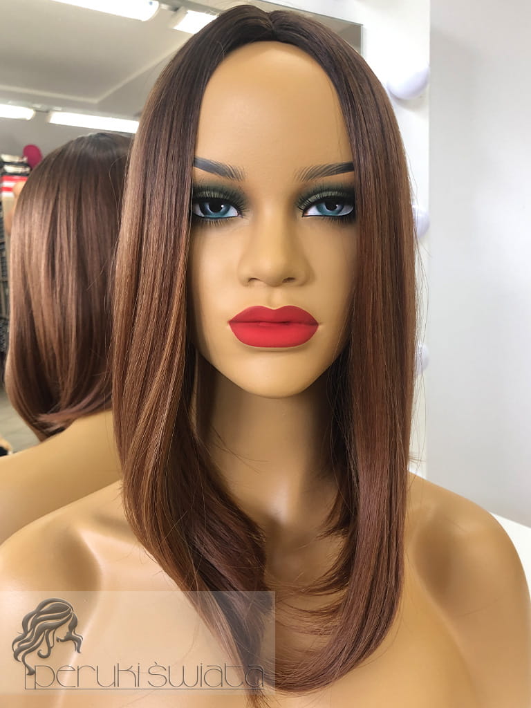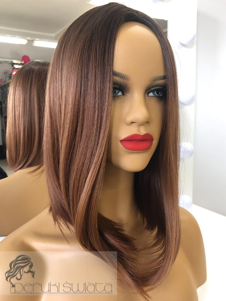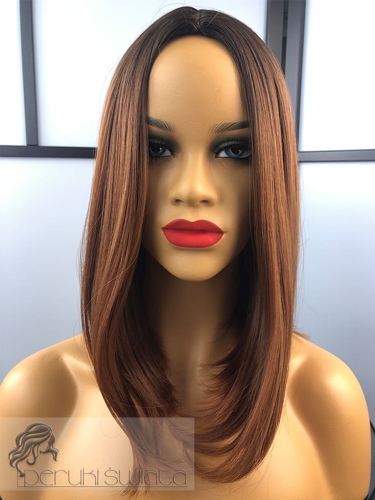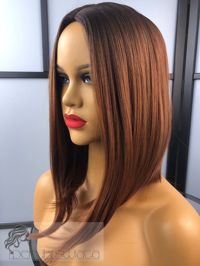 Peruka syntetyczna Zayla, bob, ombre, kolor: rudy kasztan na odroście