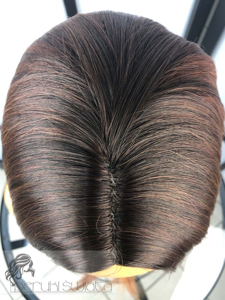 Silikonowy przedziałek na środku (można go przestylizować w lewo lub prawo, w obrębie silikonowej wkładki za pomocą prostownicy lub lokówki)