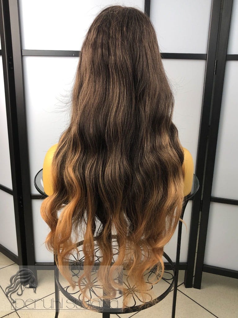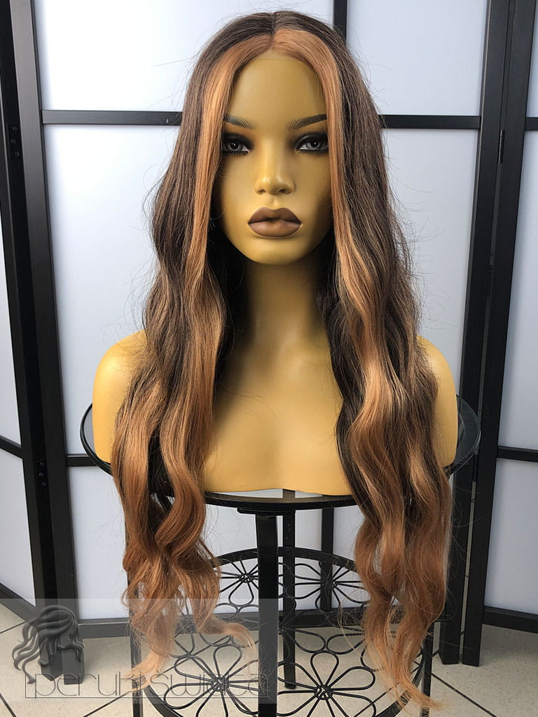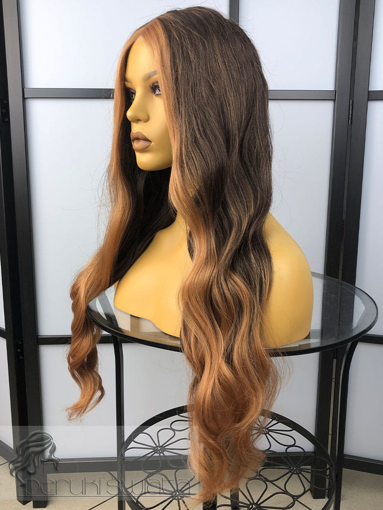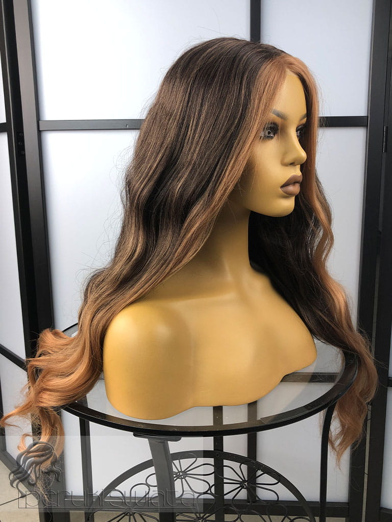 Peruka syntetyczna Zoia, kanekalon premium , fale, kolor: miodowy blond z brązem
