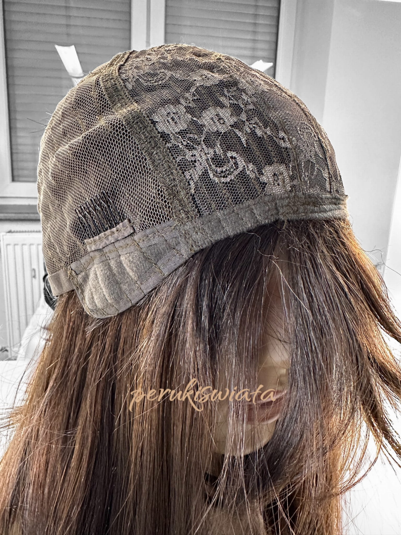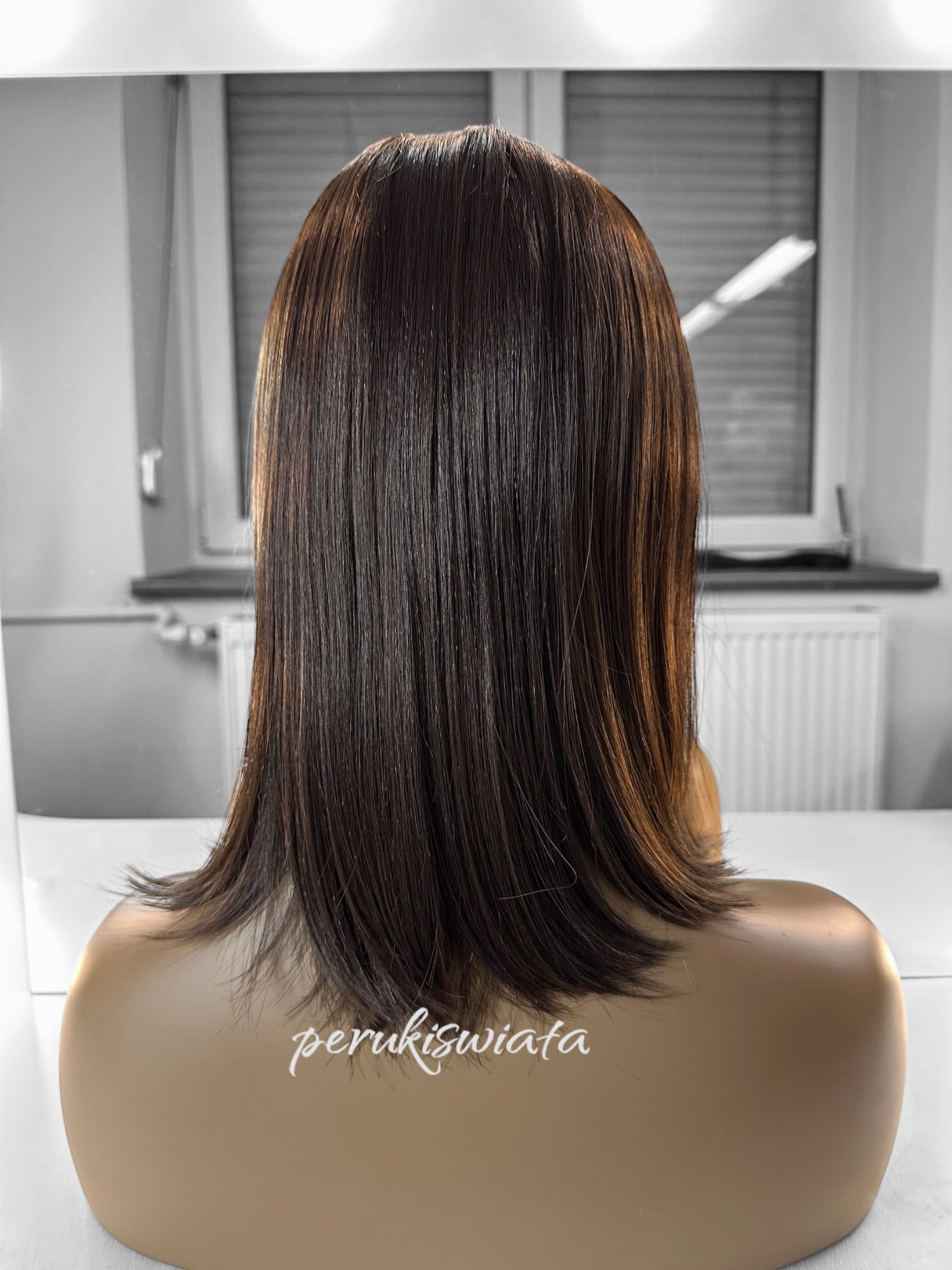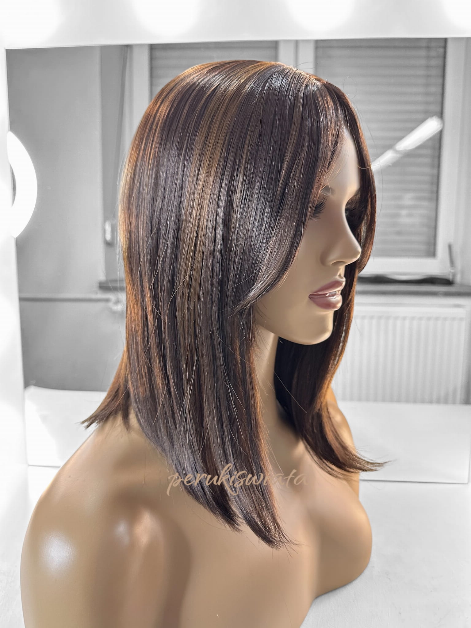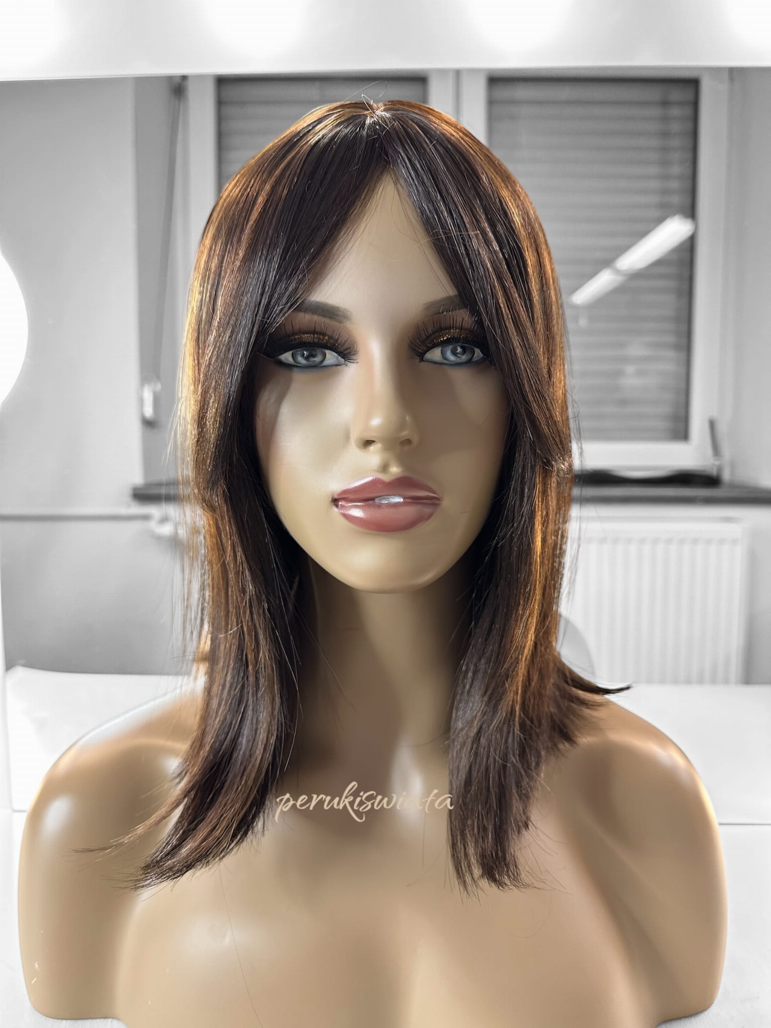 Peruka syntetyczna do codziennego użytku, model Diana, kanekalon japoński, brąz z pasemkami
