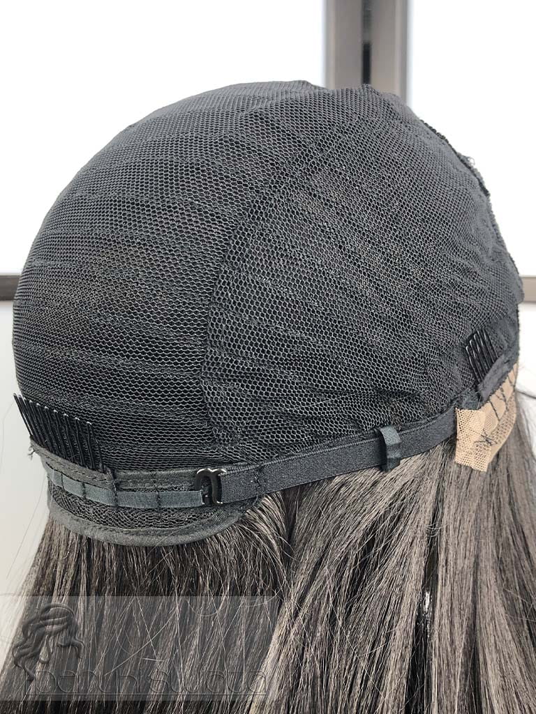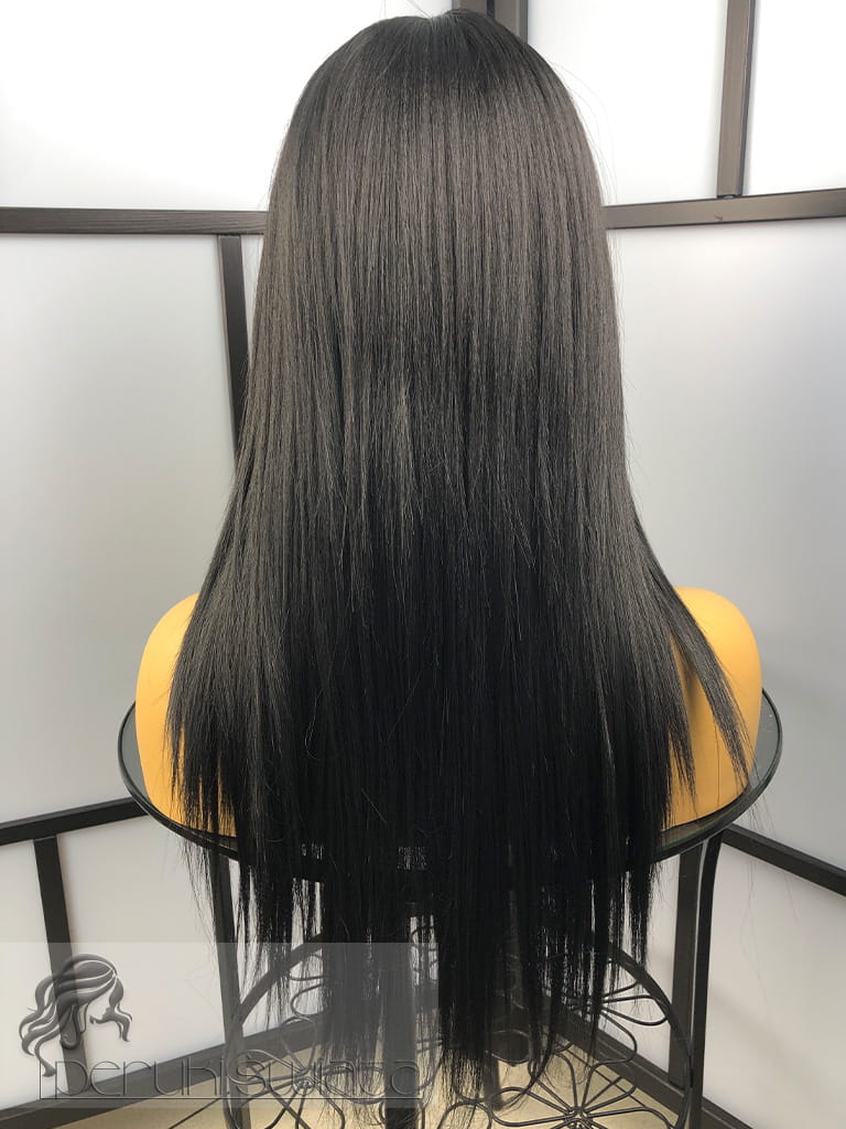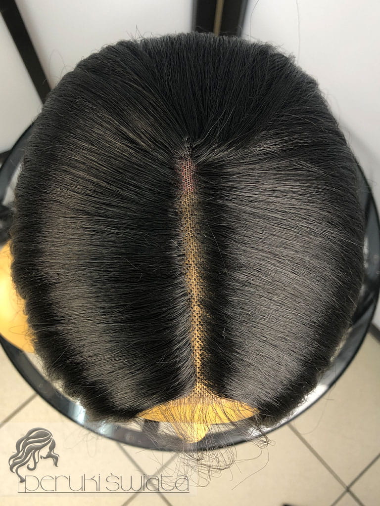 Włosy proste, cieniowane, z przedziałkiem z mikroskóry na środku czepka