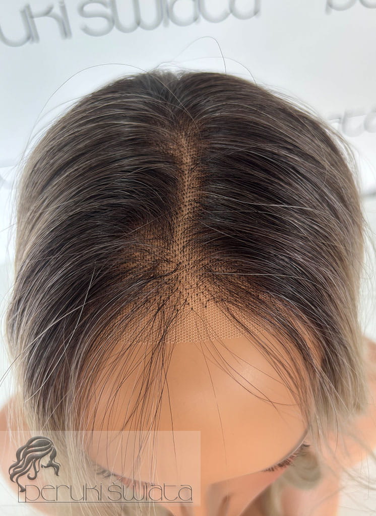 Czepek typu: full lace front (możliwość dowolnego zaczesania przedziałka w obrębie siateczki, podcięcia grzywki, efekt wyrastania włosów z głowy, rozmyta linia przednia peruki)