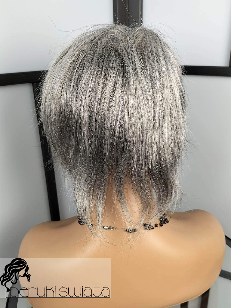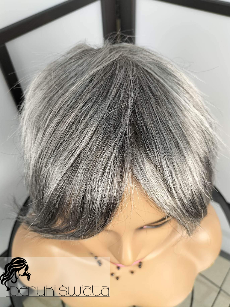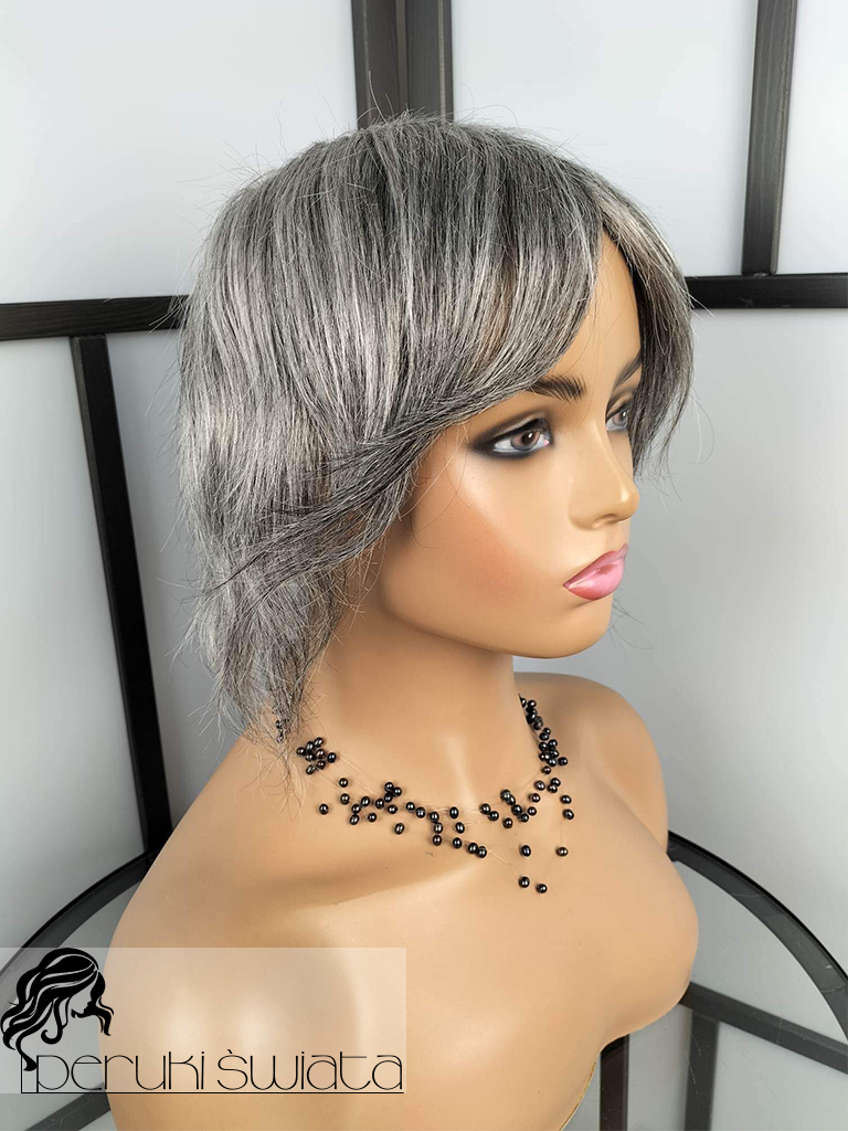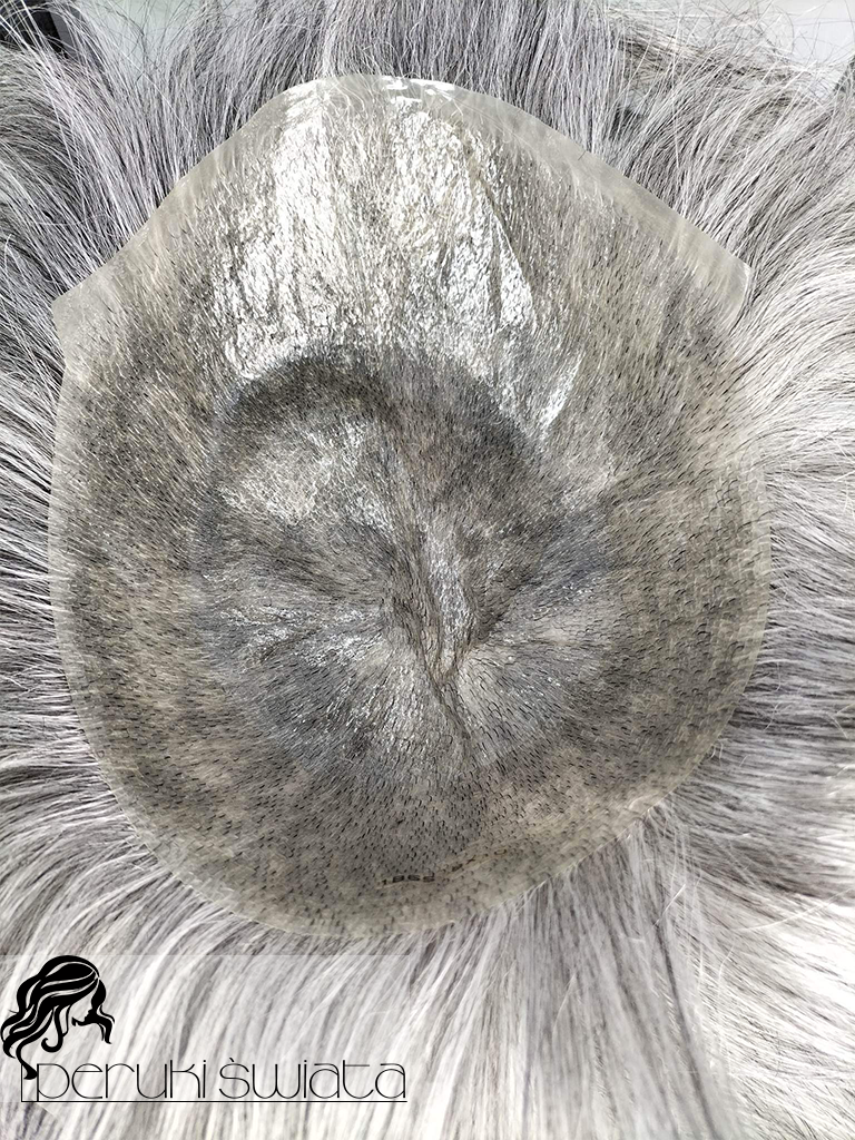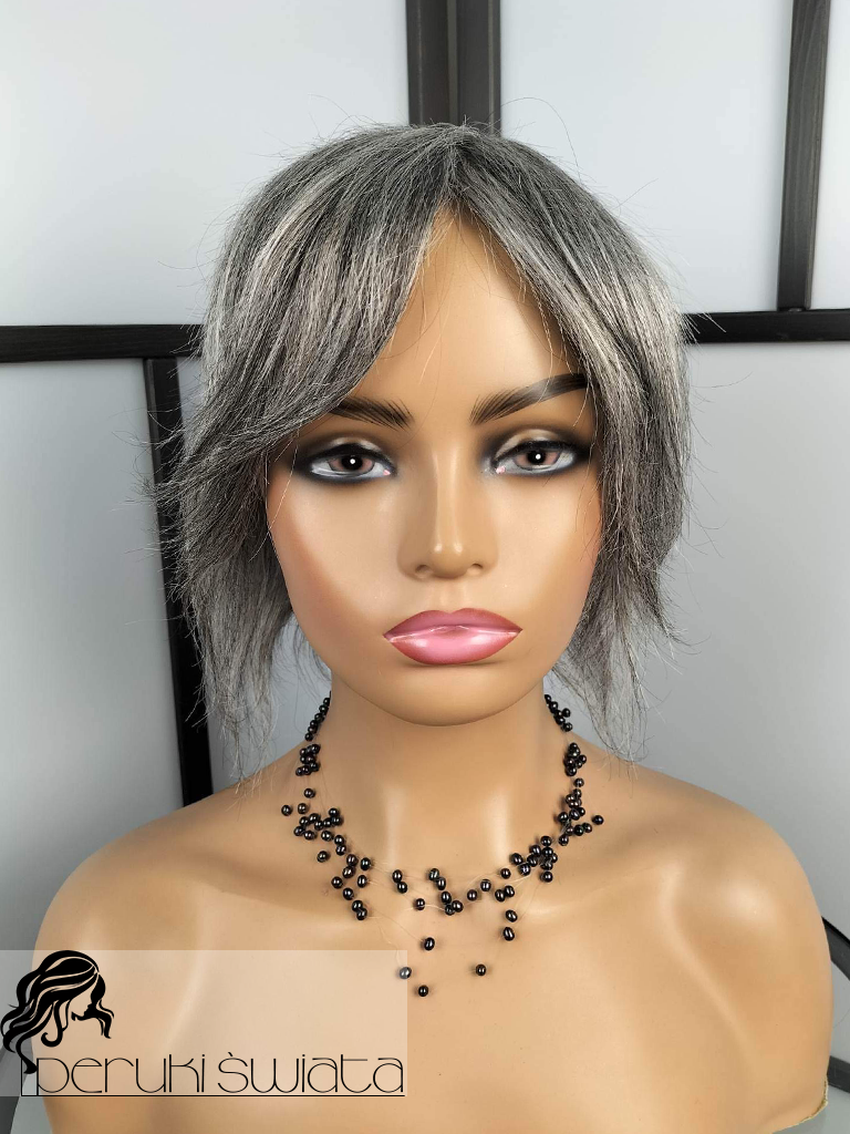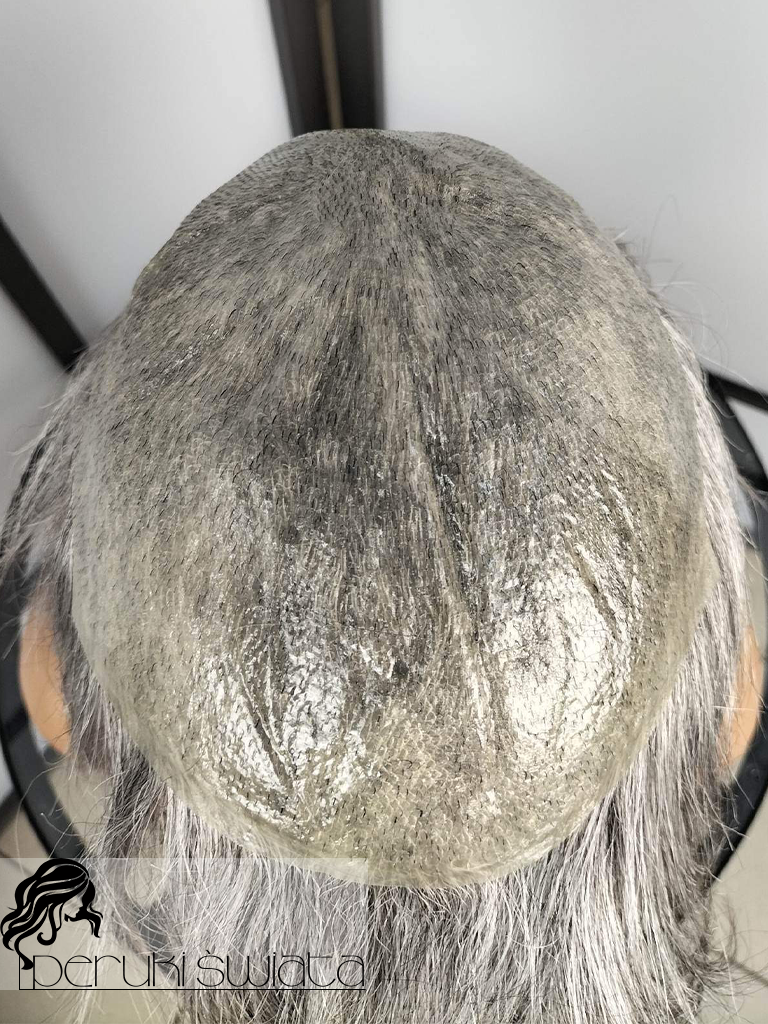 Peruka systemowa/topper klejony, model Helena, z włosów naturalnych, kolor: siwy