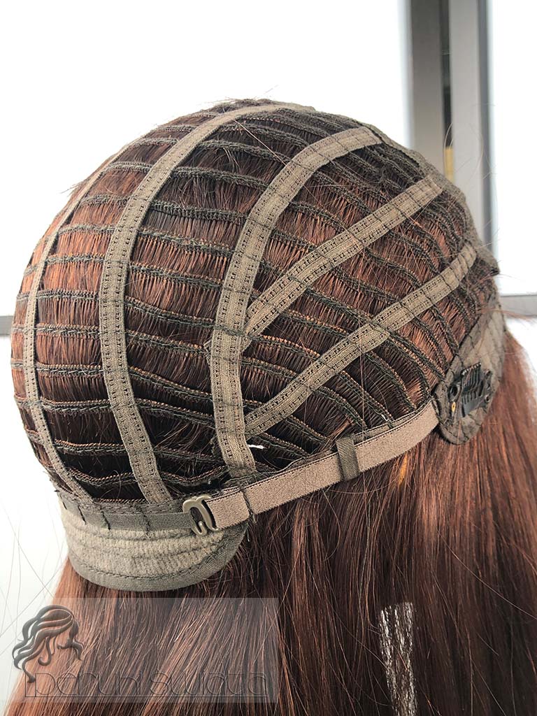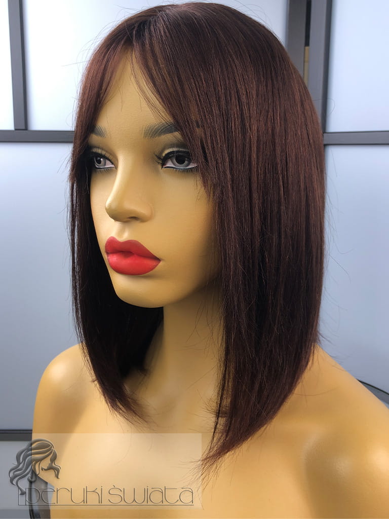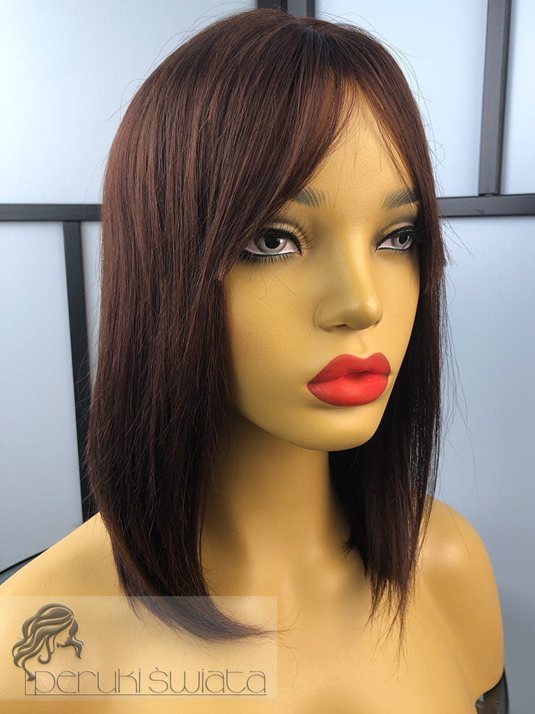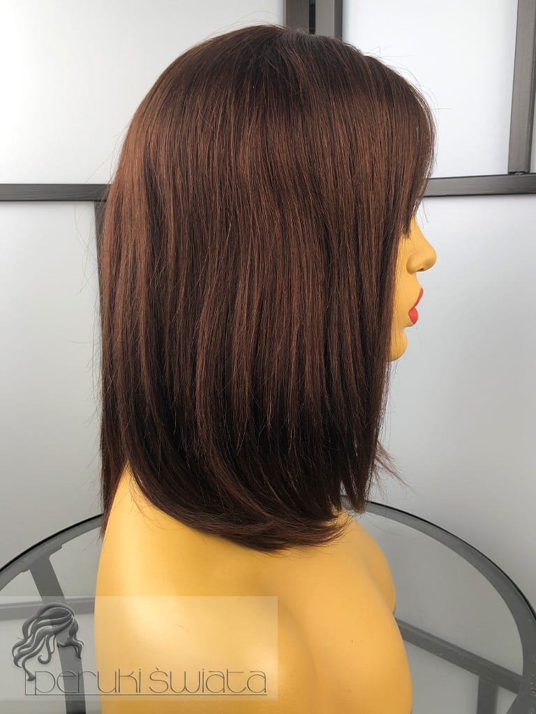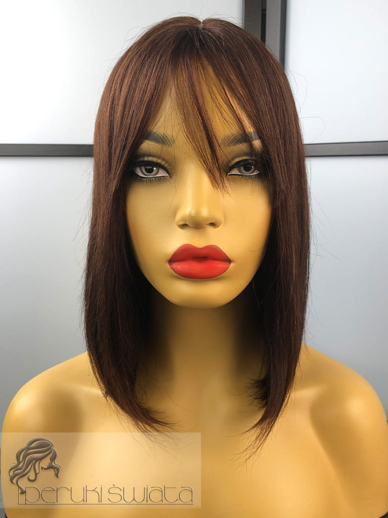Peruka z włosów naturalnych, model Ariane, long bob z grzywką, kolor: kasztanowy brąz