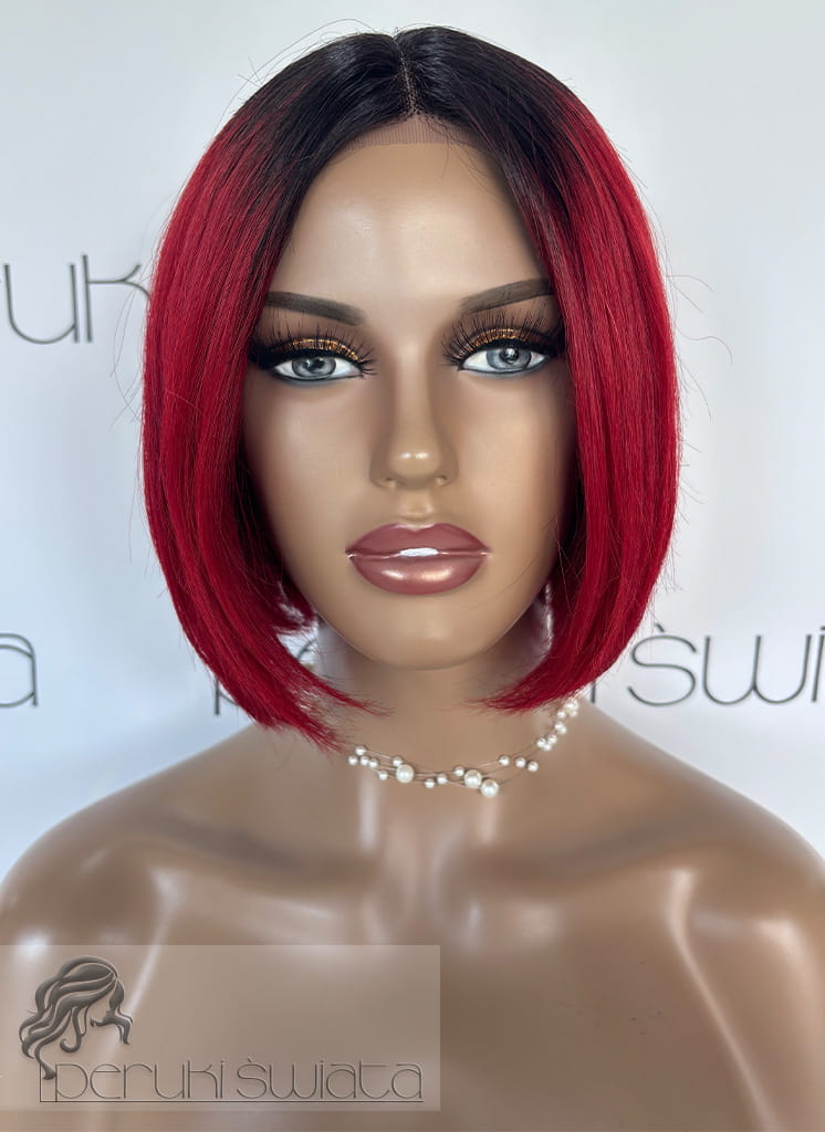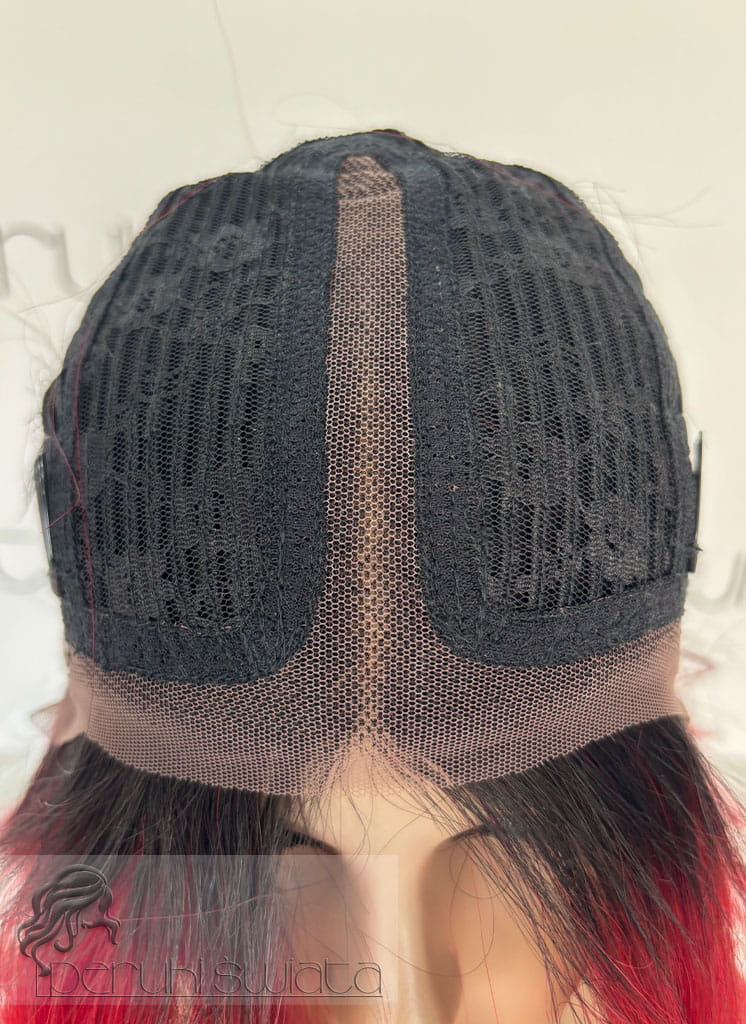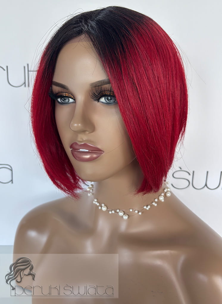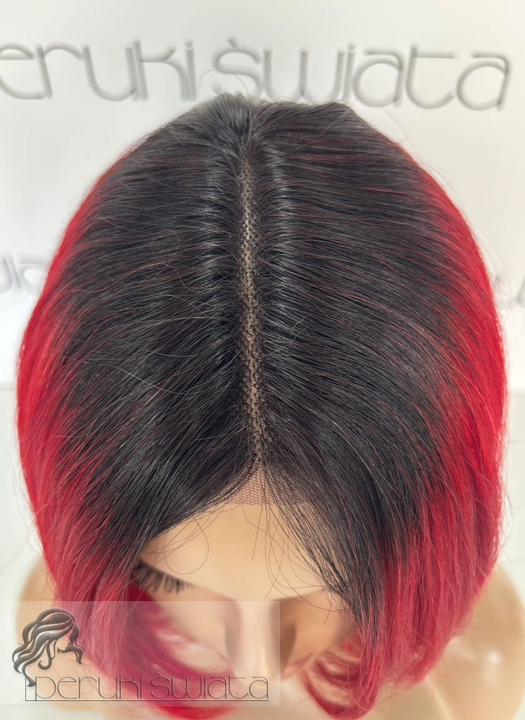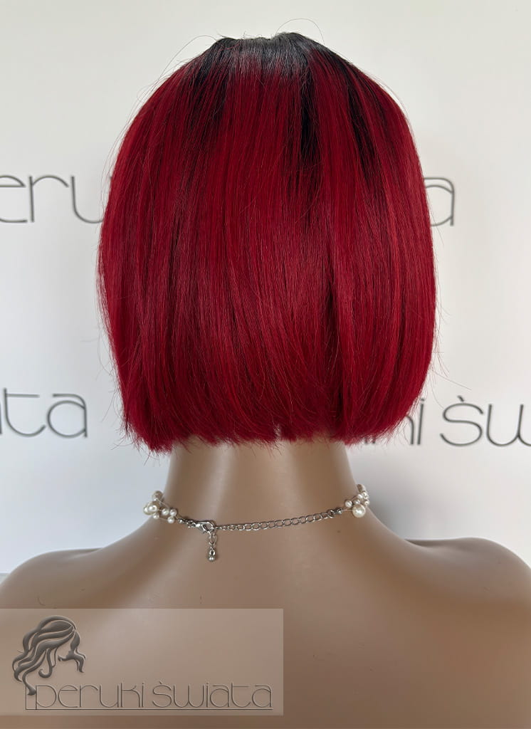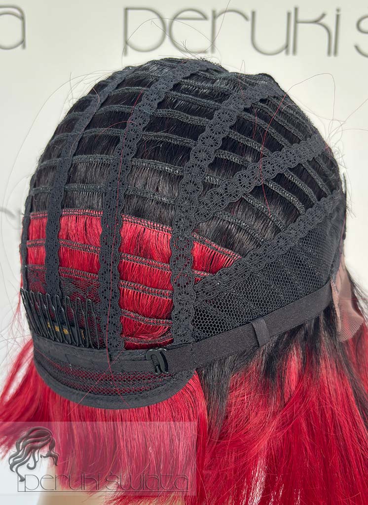 Peruka z włosów naturalnych, model Cadence, kolor: czerwień na odroście