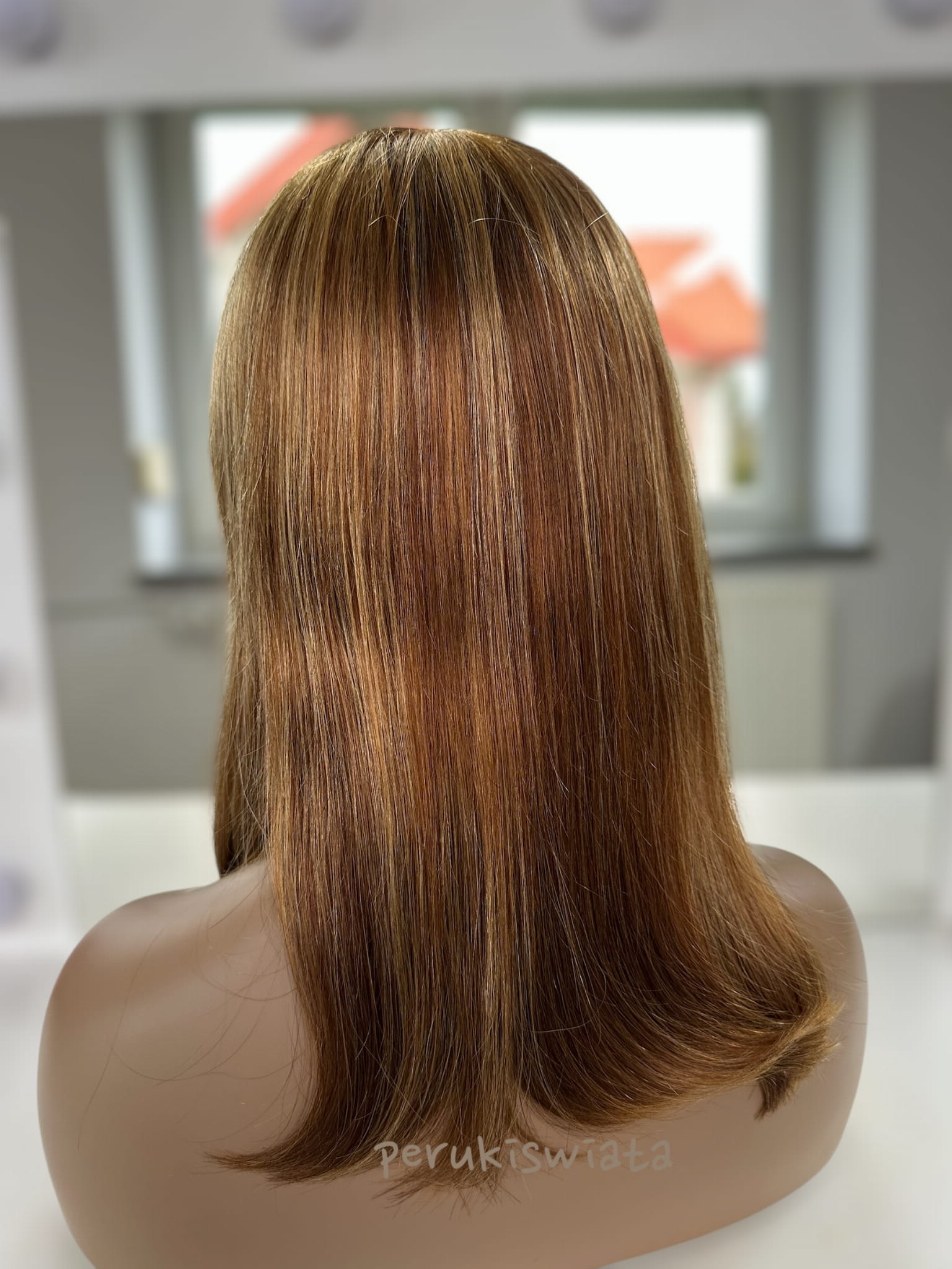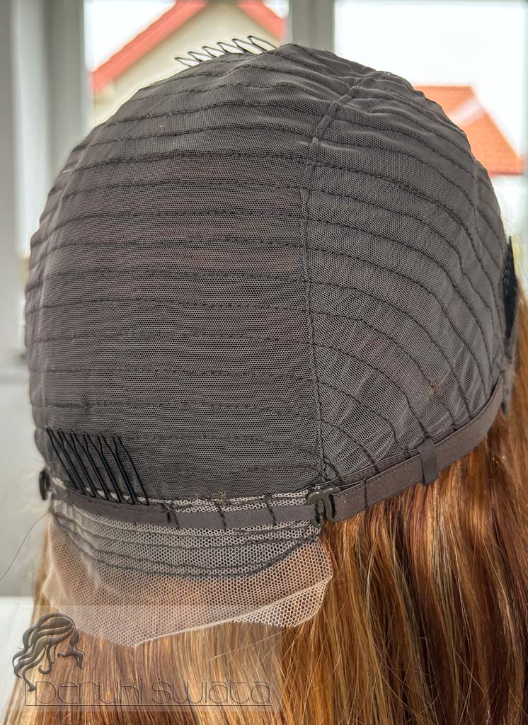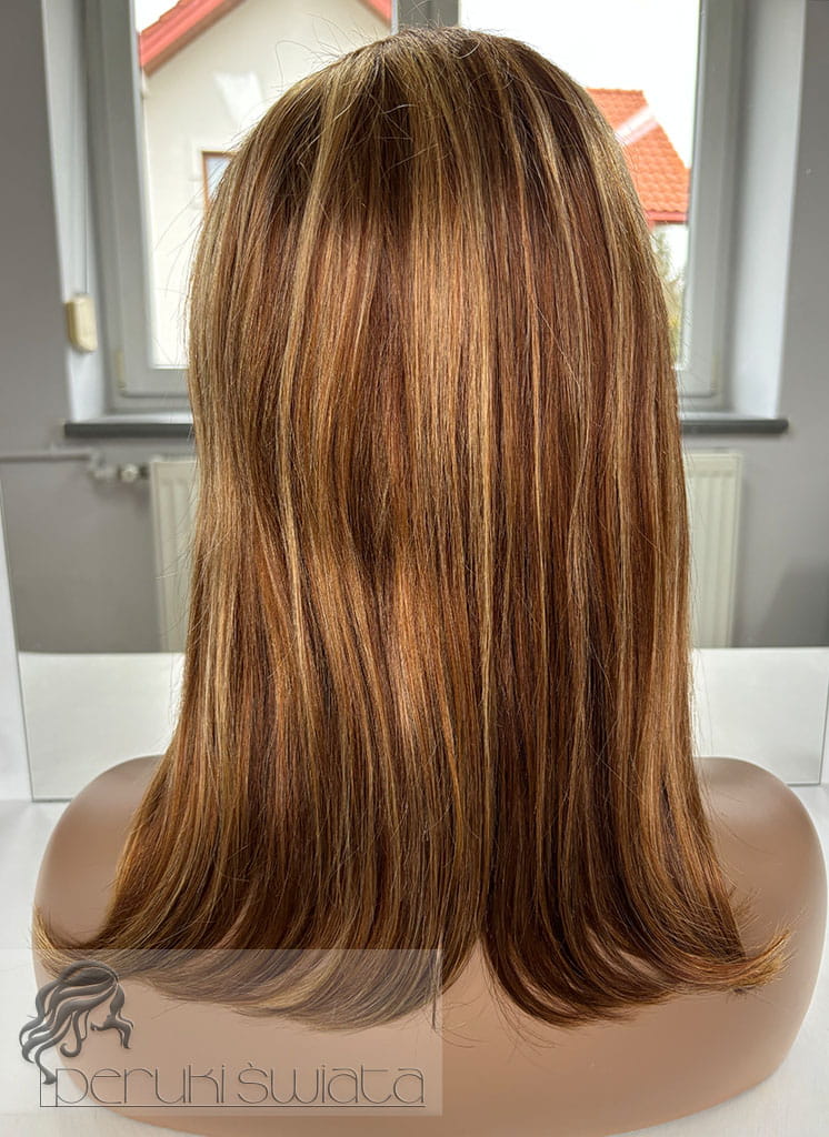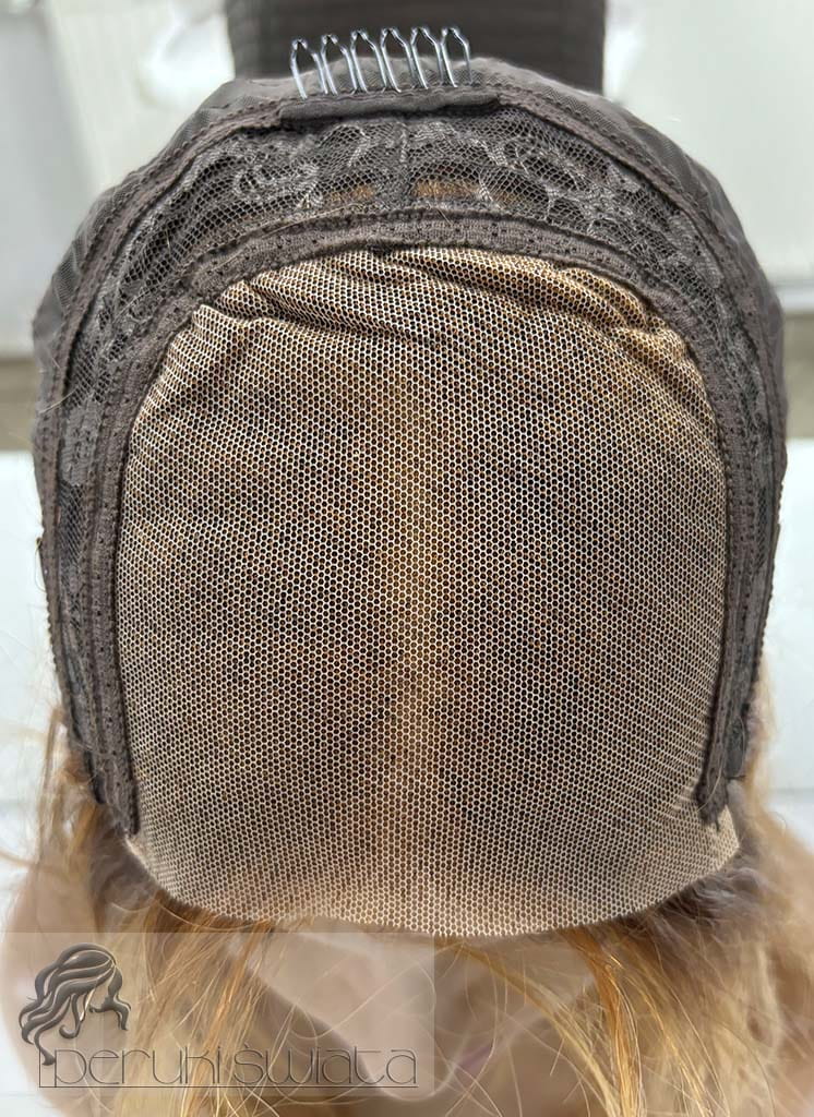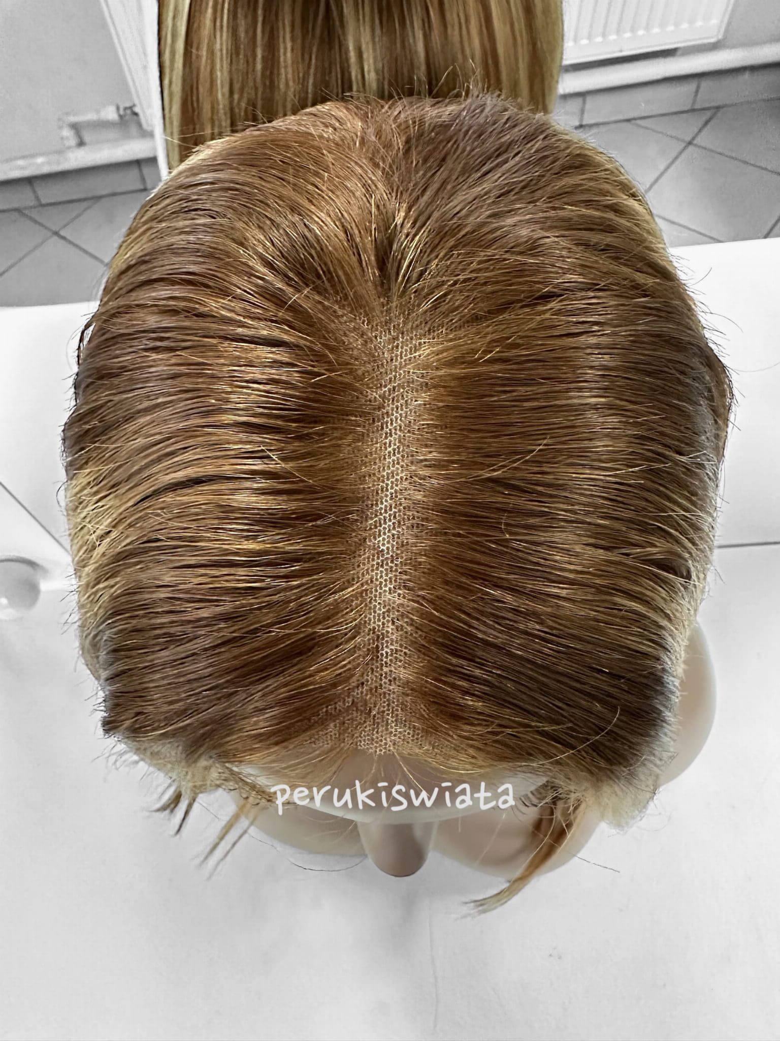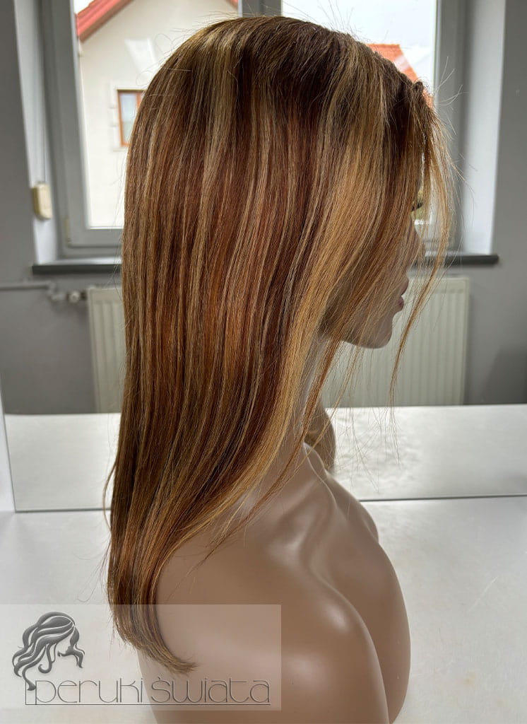 Peruka z włosów naturalnych, model Reese, rudy z blondem