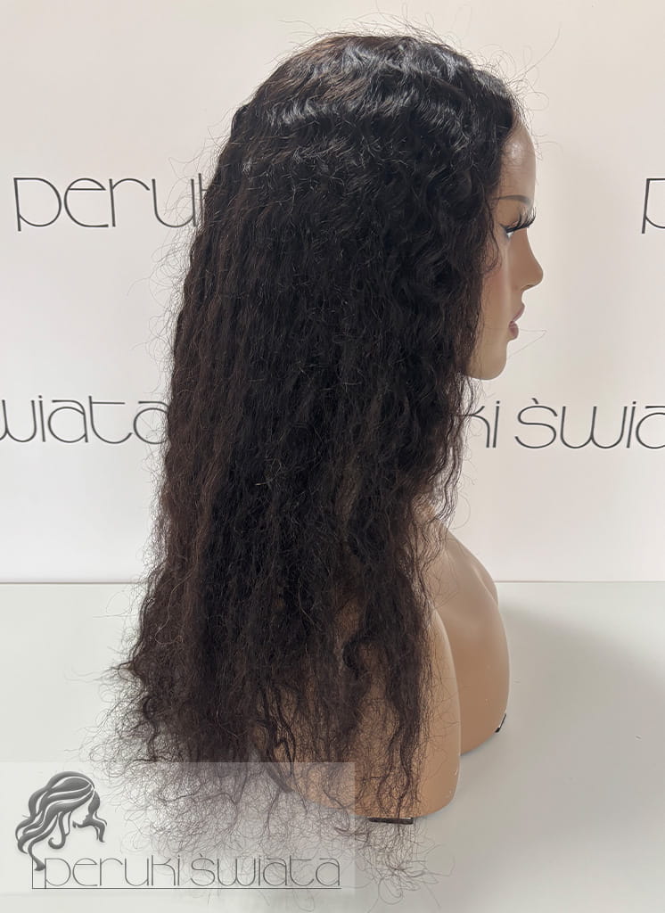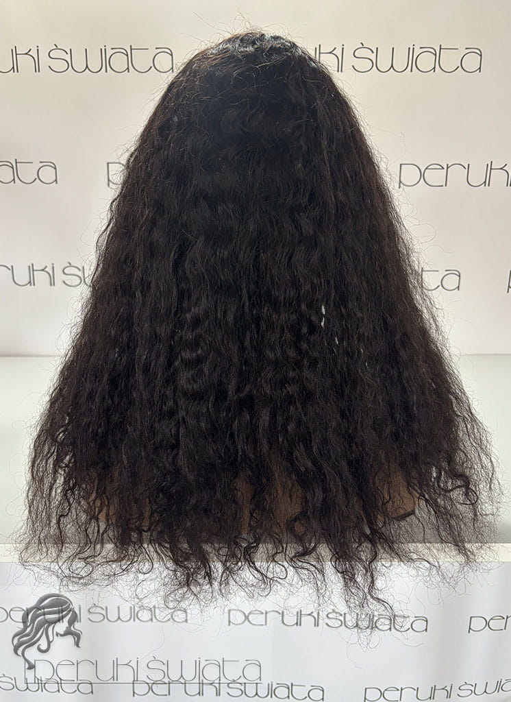 Peruka z włosów naturalnych, model Synthia, afroloki, kolor: ciemny brąz