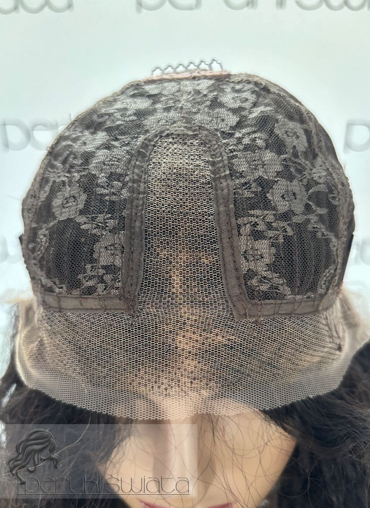 Czepek typu: lace front (efekt wyrastania włosów z głowy, rozmyta linia przednia peruki, stapianie się ze skalpem)