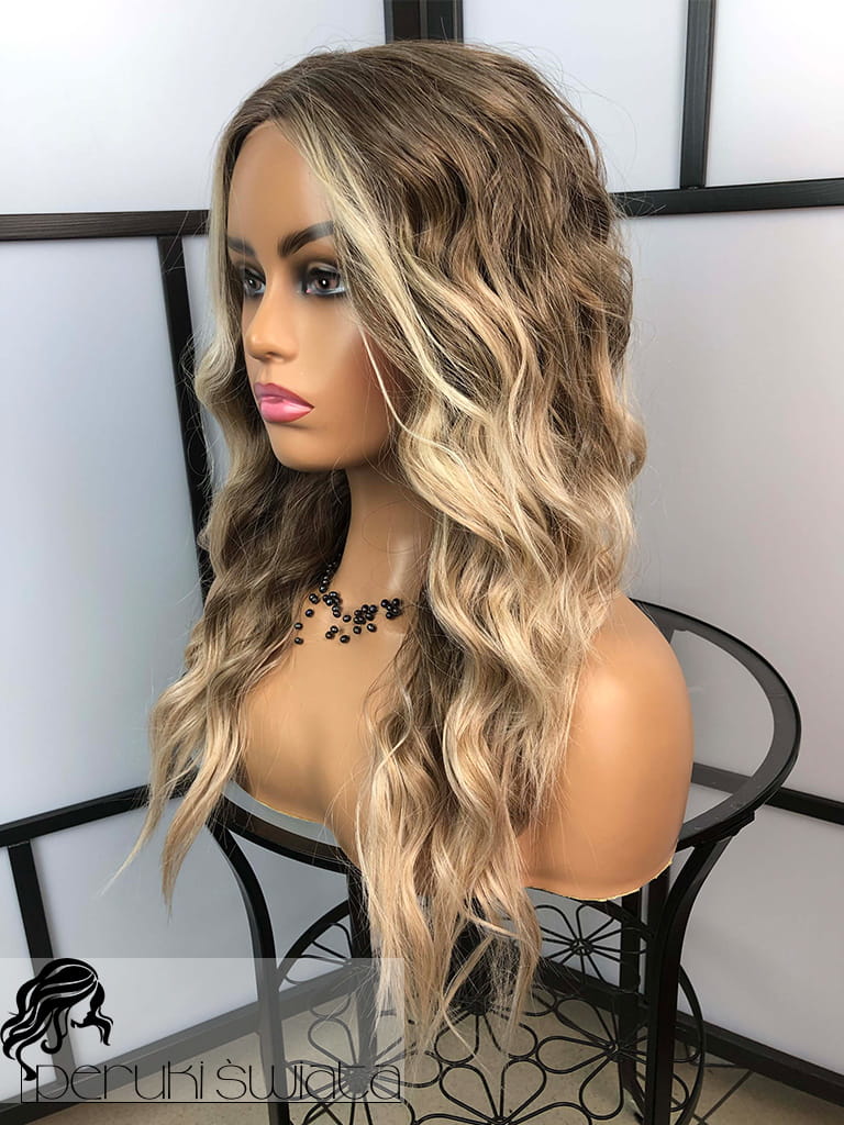 Profesjonalna peruka syntetyczna, model Kaylee, kanekalon japoński, sombre, kolor: mix blondów o różnej tonacji