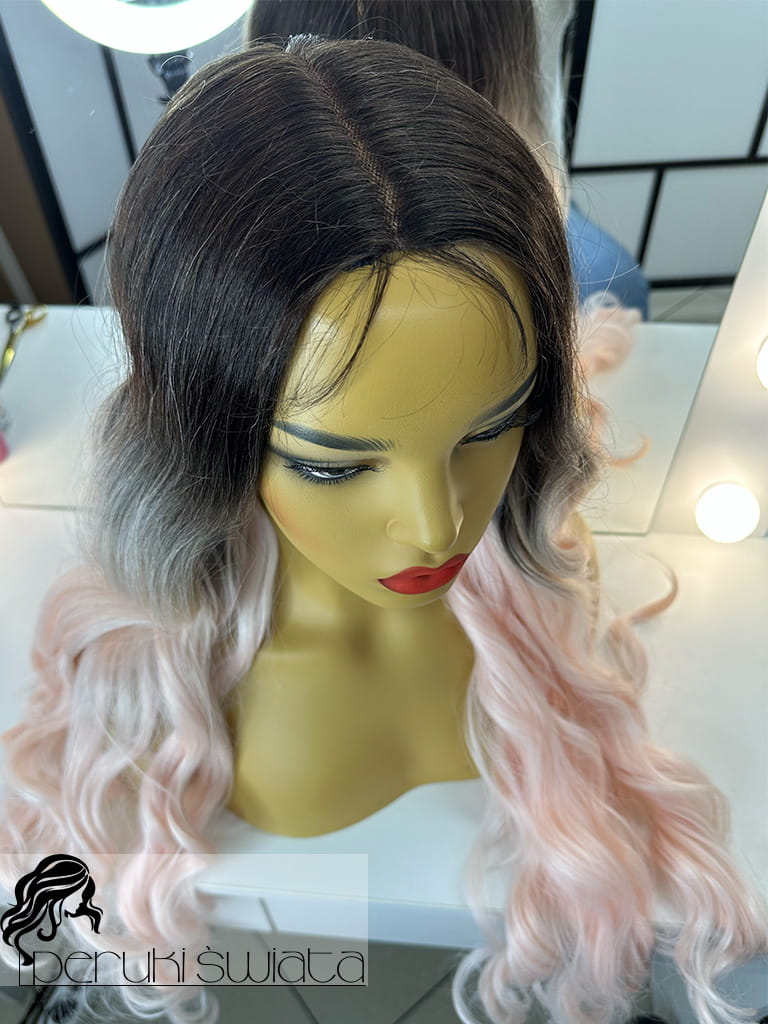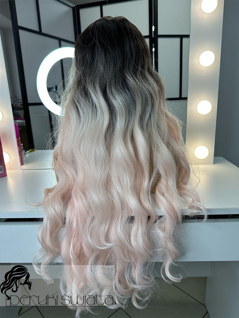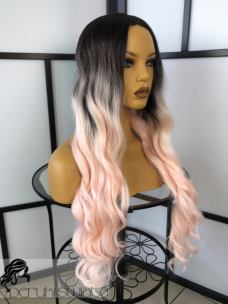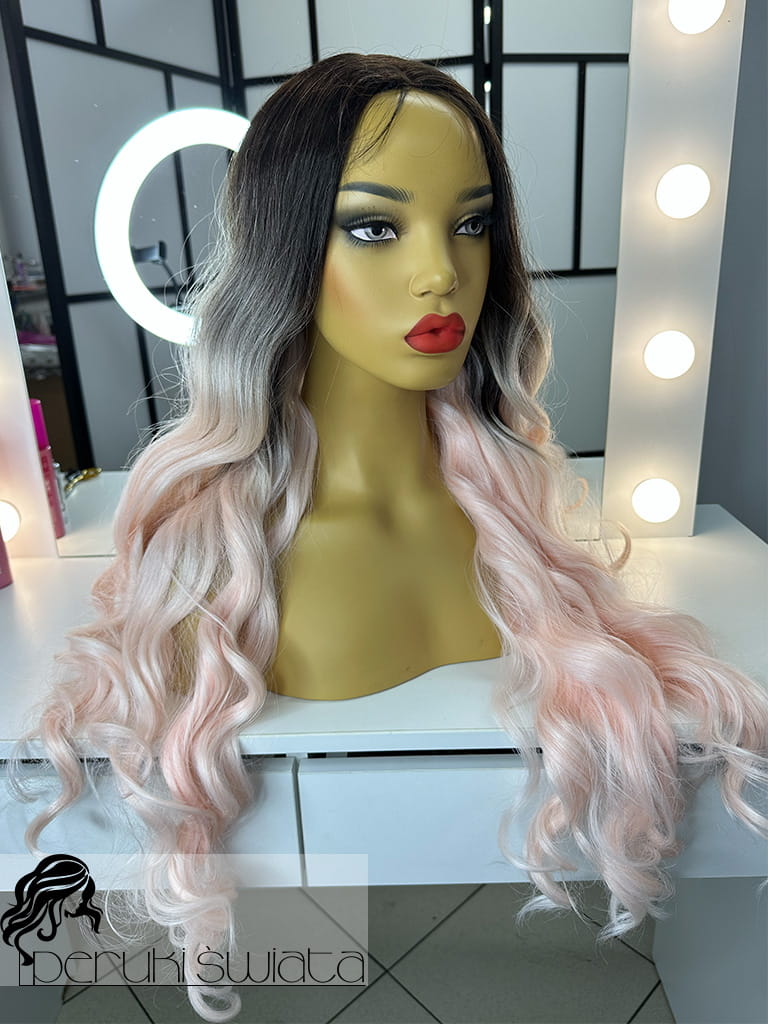 Profesjonalna peruka syntetyczna, sceniczna, codzienna, model Maud, kanekalon termoplastyczny, ombre, baby pink