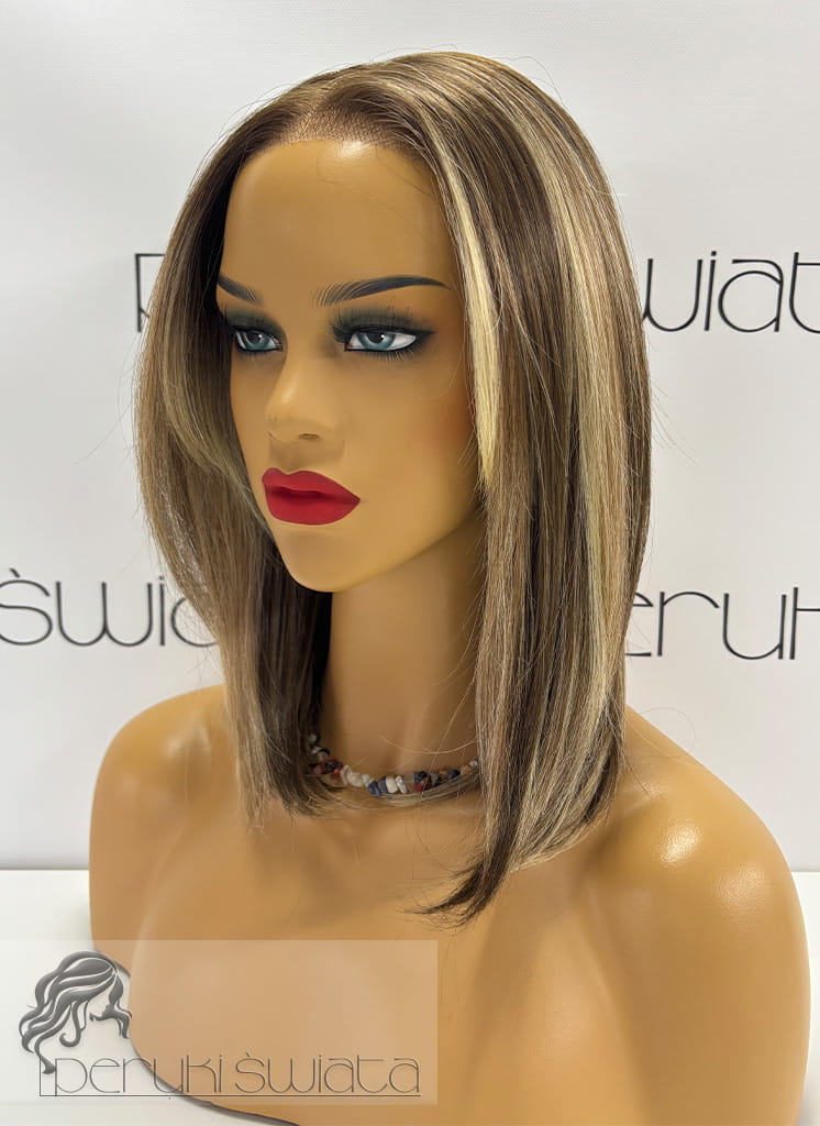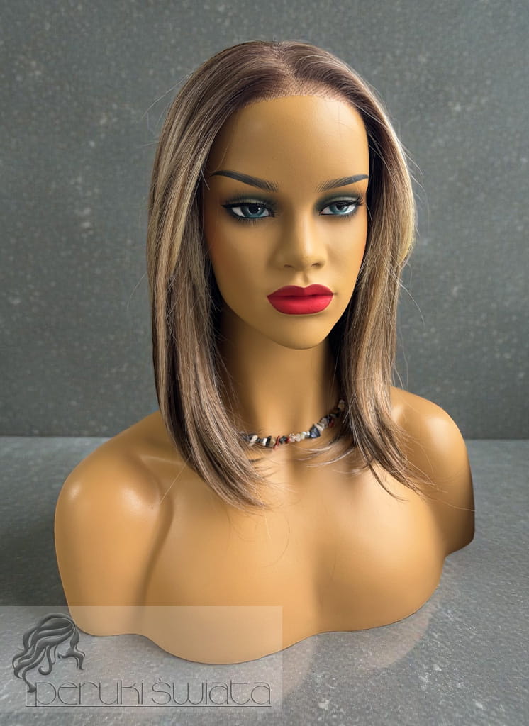 Peruka syntetyczna Dominika, kanekalon typu "true hair", kolor: brąz z refleksami blondu
