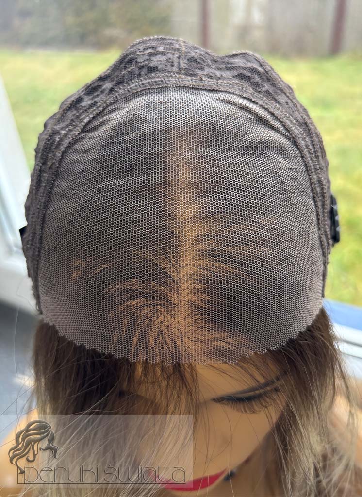 Czepek typu: full lace front (możliwość dowolnego zaczesania przedziałka w obrębie siateczki, podcięcia grzywki, efekt wyrastania włosów z głowy, rozmyta linia przednia peruki)