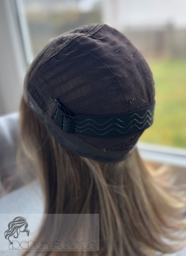 Profesjonalna peruka syntetyczna Margarita z podwójną regulacją rozmiaru, czepek typu: full lace, kanekalon termoplastyczny, mix ciepłych blondów