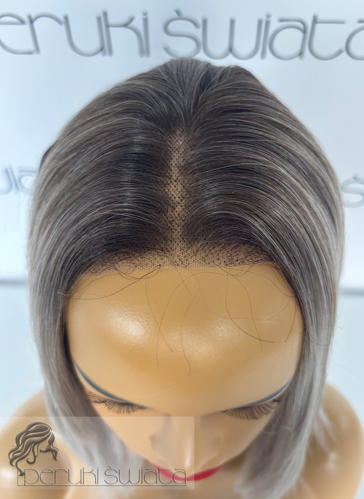 Czepek typu: full lace front (możliwość dowolnego zaczesania przedziałka w obrębie siateczki, podcięcia grzywki, efekt wyrastania włosów z głowy, rozmyta linia przednia peruki)