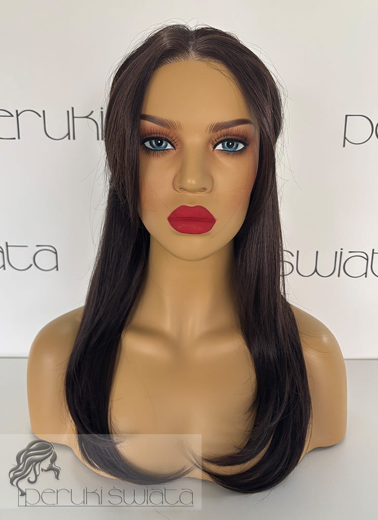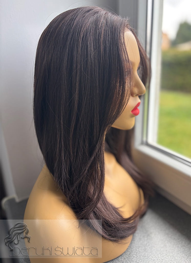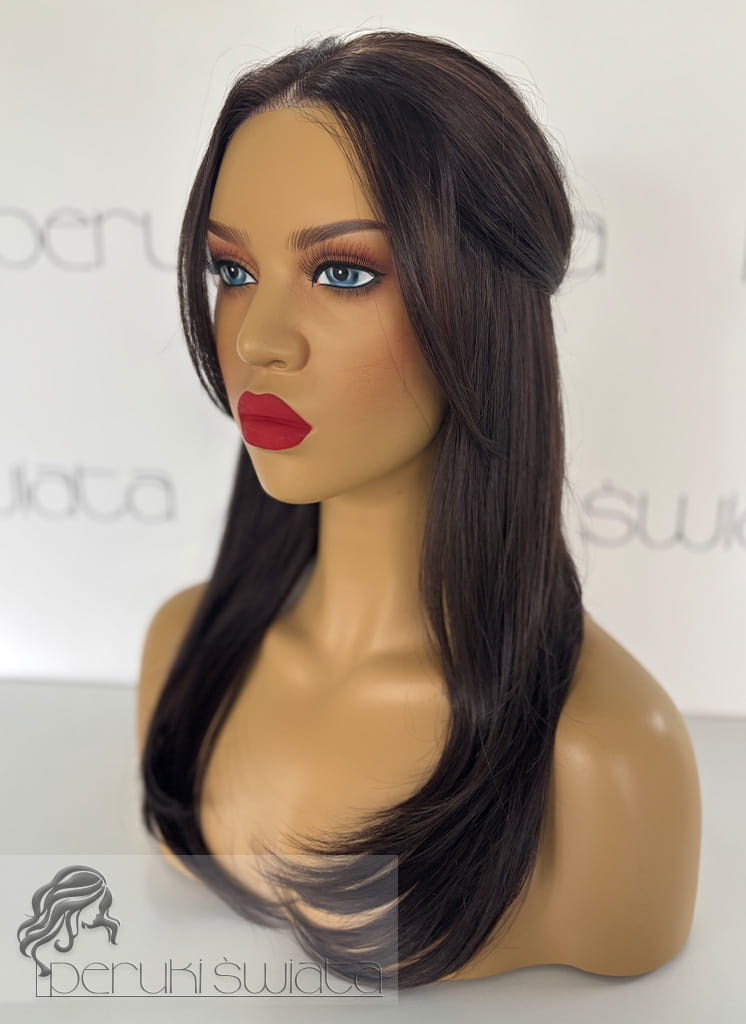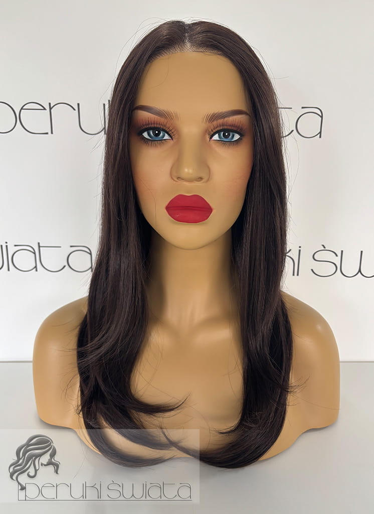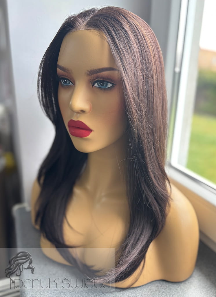 Profesjonalna peruka syntetyczna Silvia, czepek typu: full lace, kanekalon termoplastyczny, brąz z refleksami (F5/6A)