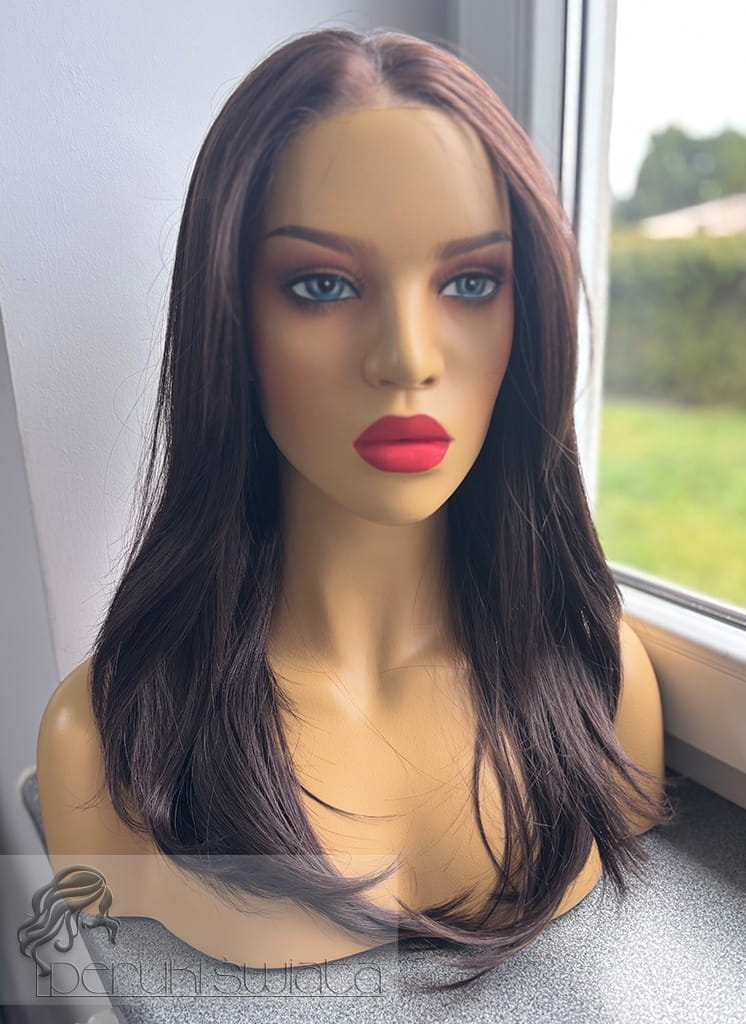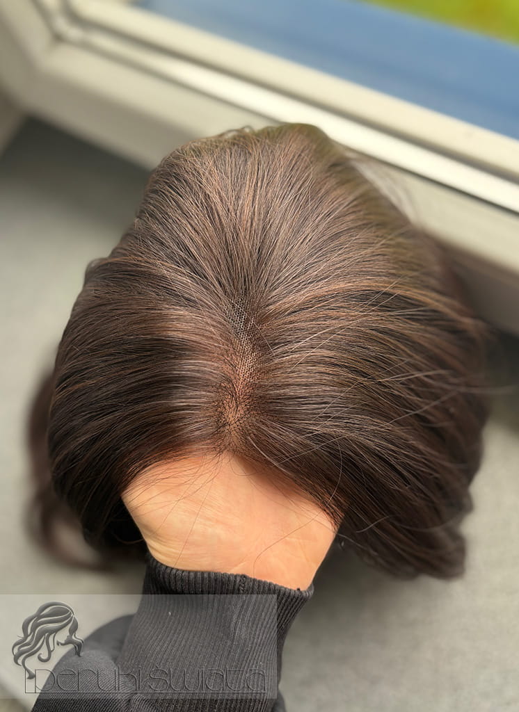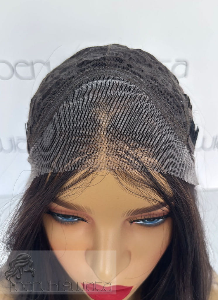 Czepek typu: full lace front (możliwość dowolnego zaczesania przedziałka w obrębie siateczki, podcięcia grzywki, efekt wyrastania włosów z głowy, rozmyta linia przednia peruki)