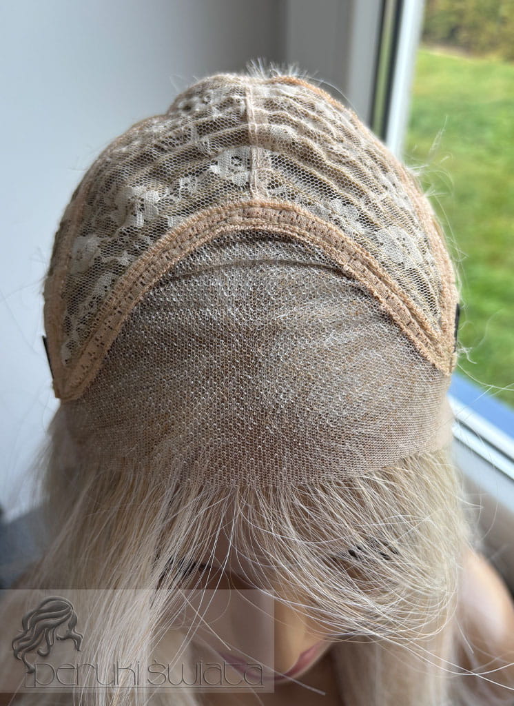 Czepek typu: full lace front (możliwość dowolnego zaczesania przedziałka w obrębie siateczki, podcięcia grzywki, efekt wyrastania włosów z głowy, rozmyta linia przednia peruki)