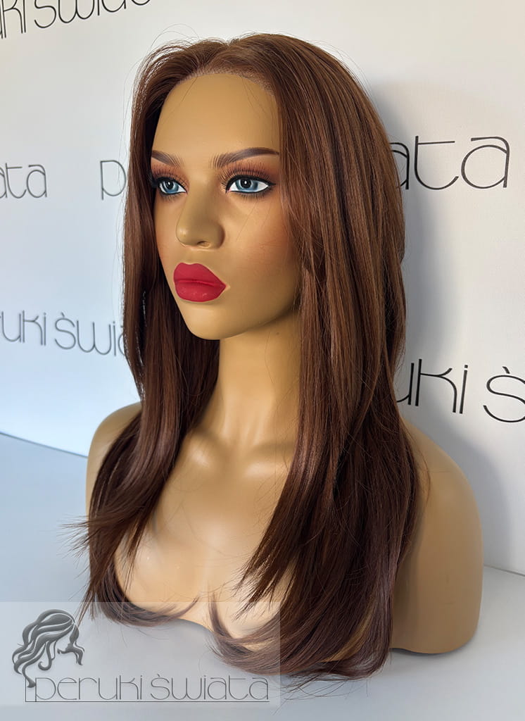 Czepek typu: full lace front (możliwość dowolnego zaczesania przedziałka w obrębie siateczki, podcięcia grzywki, efekt wyrastania włosów z głowy, rozmyta linia przednia peruki)