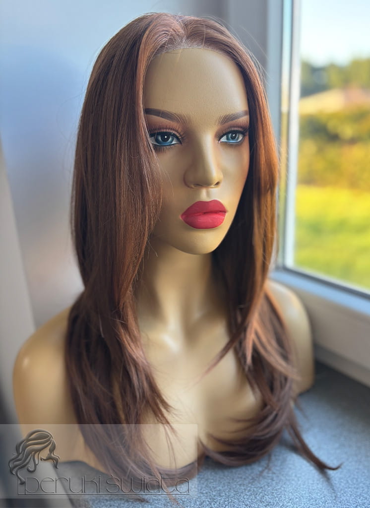 Profesjonalna peruka syntetyczna Silvia, czepek typu: full lace, kanekalon termoplastyczny, rudy nr 30D