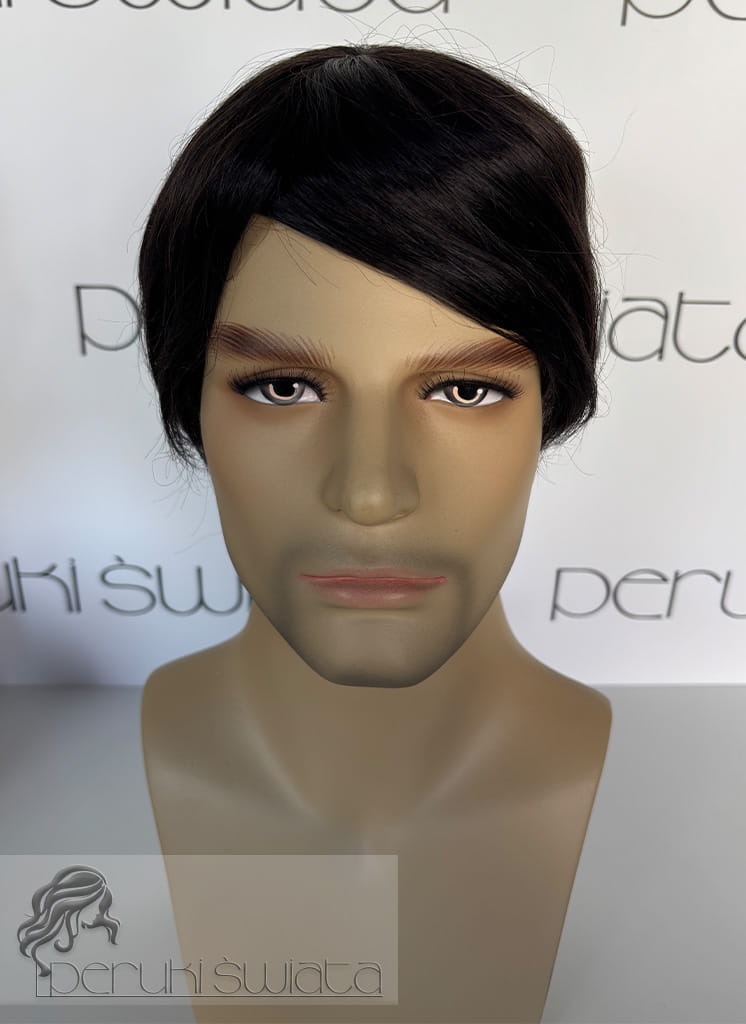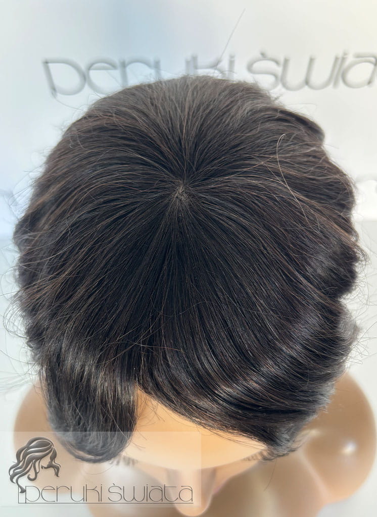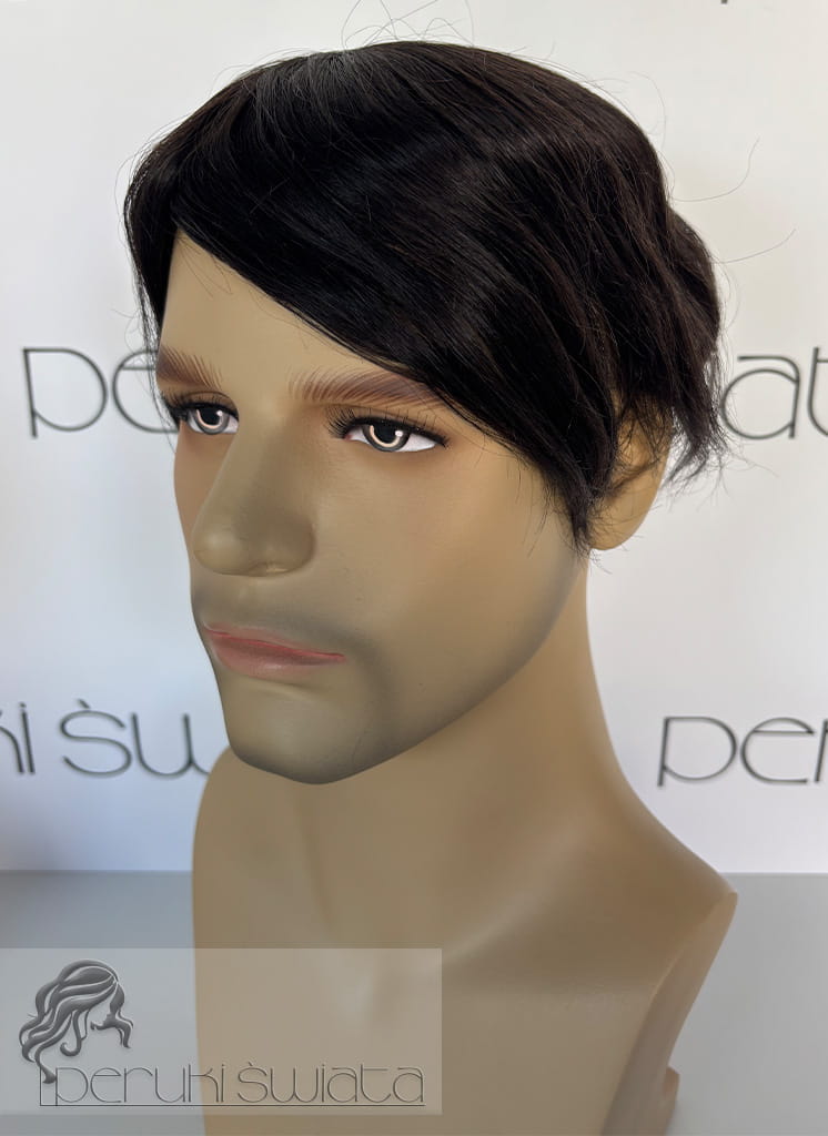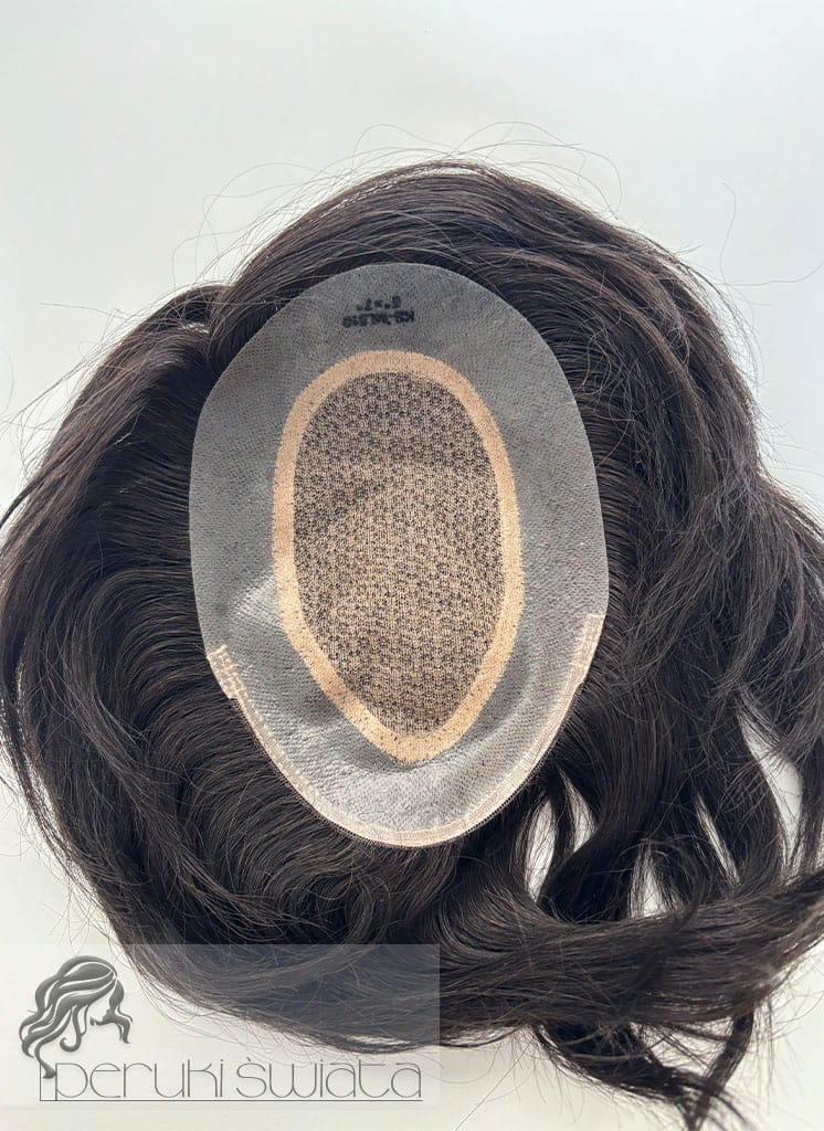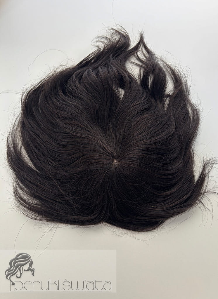 Ręcznie tkany topper/tupet systemowy, peruka systemowa, unisex, z włosów naturalnych, kolor: ciemny brąz /czerń naturalna