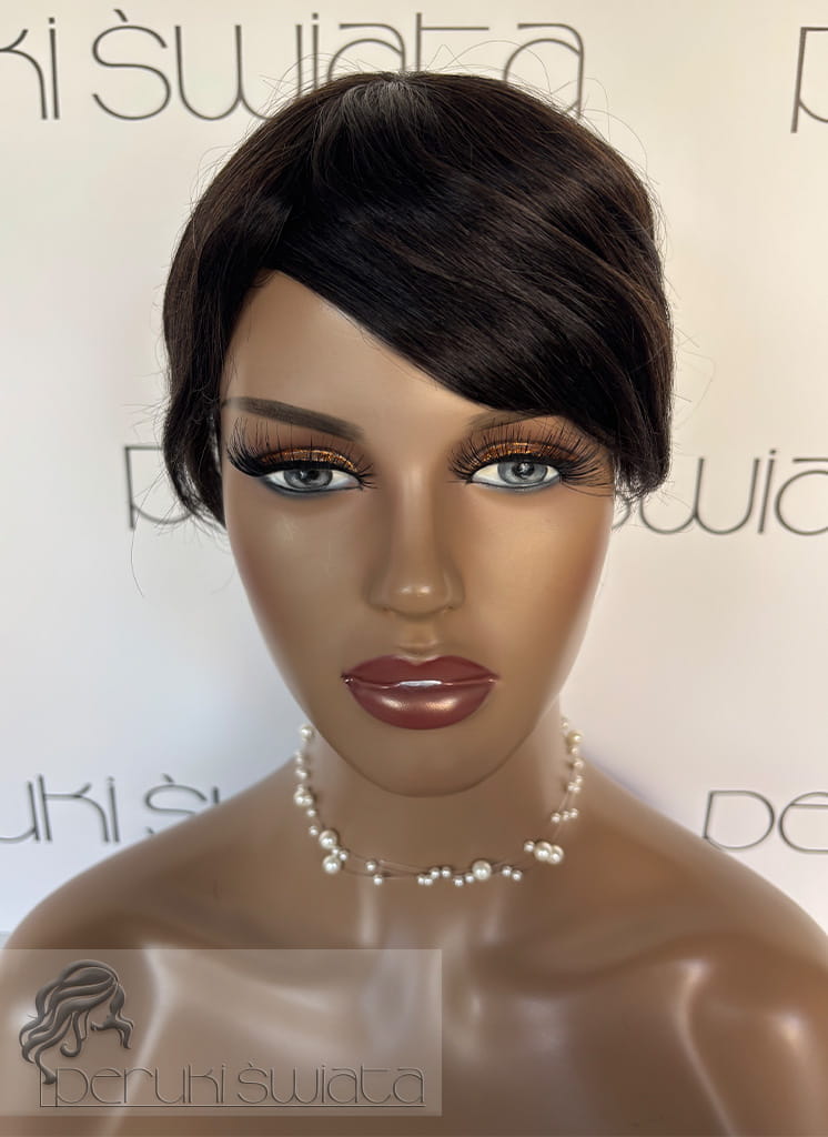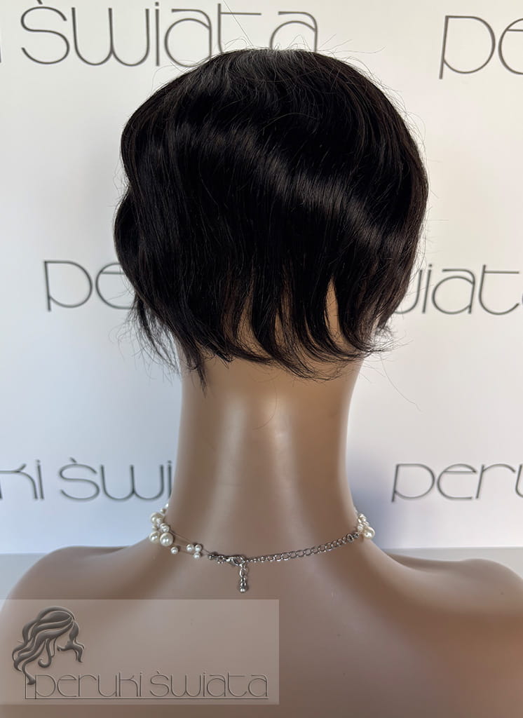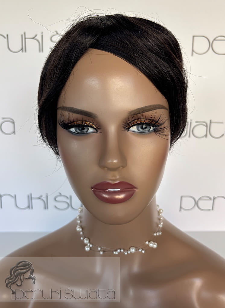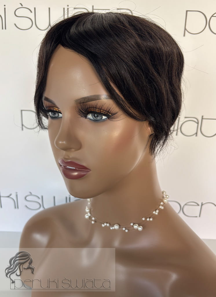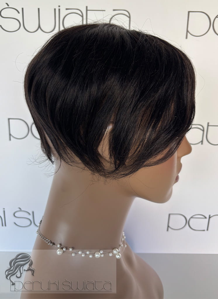 Ręcznie tkany topper/tupet systemowy, peruka systemowa, unisex, z włosów naturalnych, kolor: ciemny brąz /czerń naturalna
