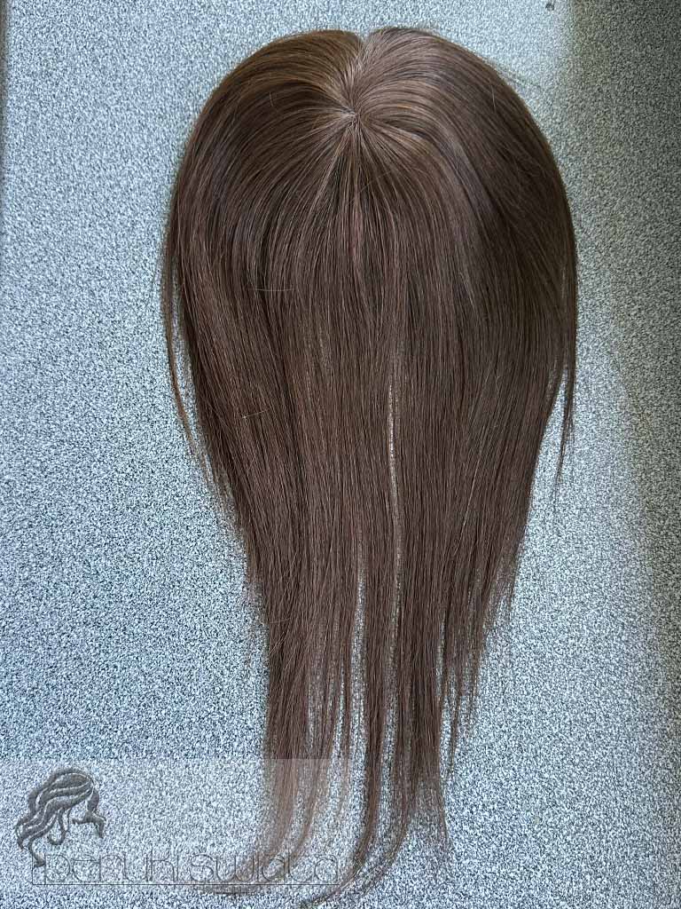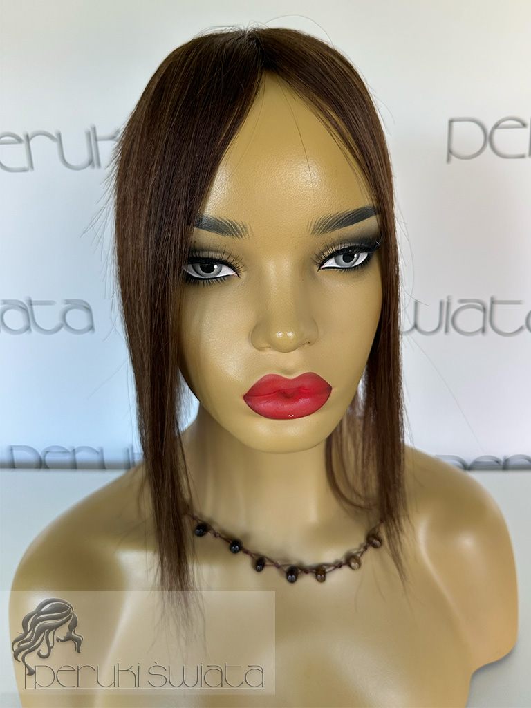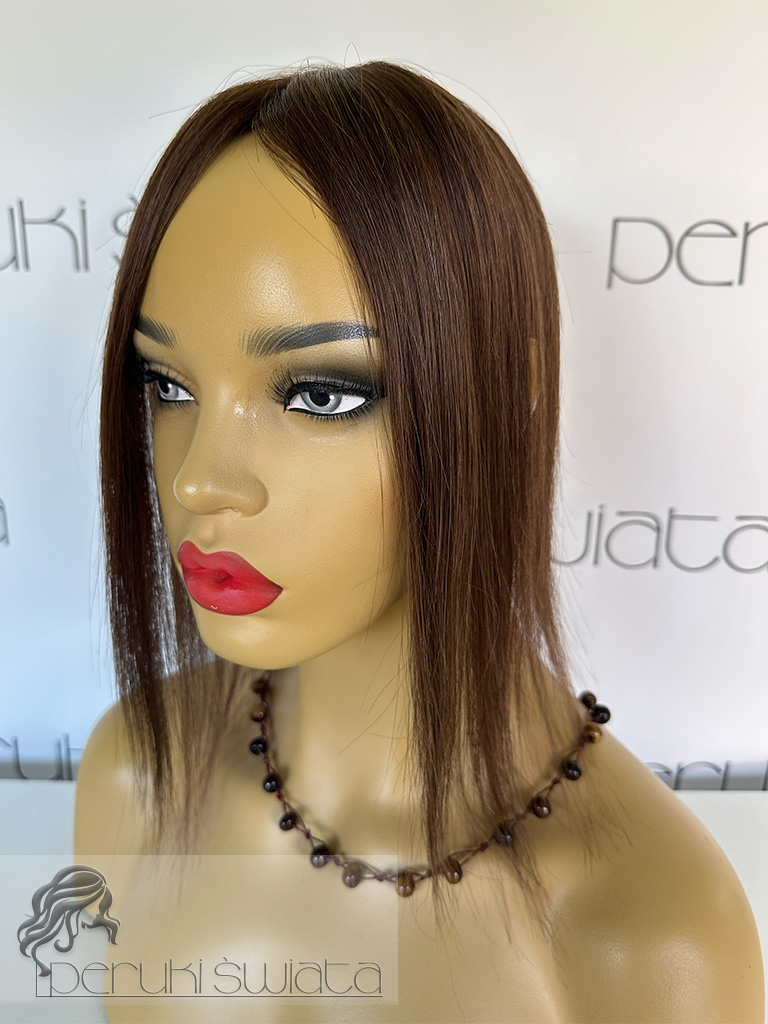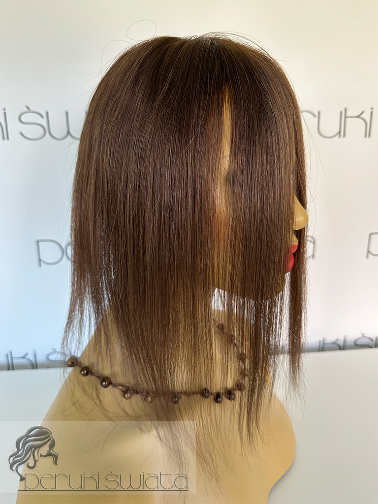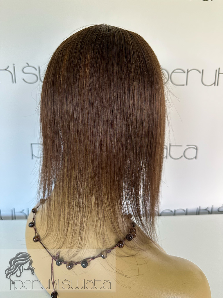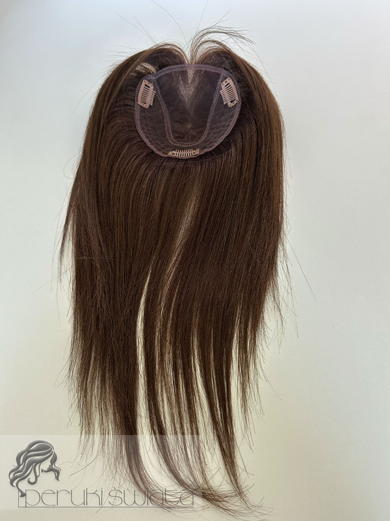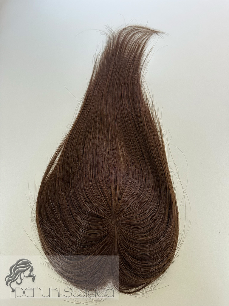 Topper hybrydowy Cornelia, włosy naturalne tkane ręcznie na siateczce, kolor: brąz