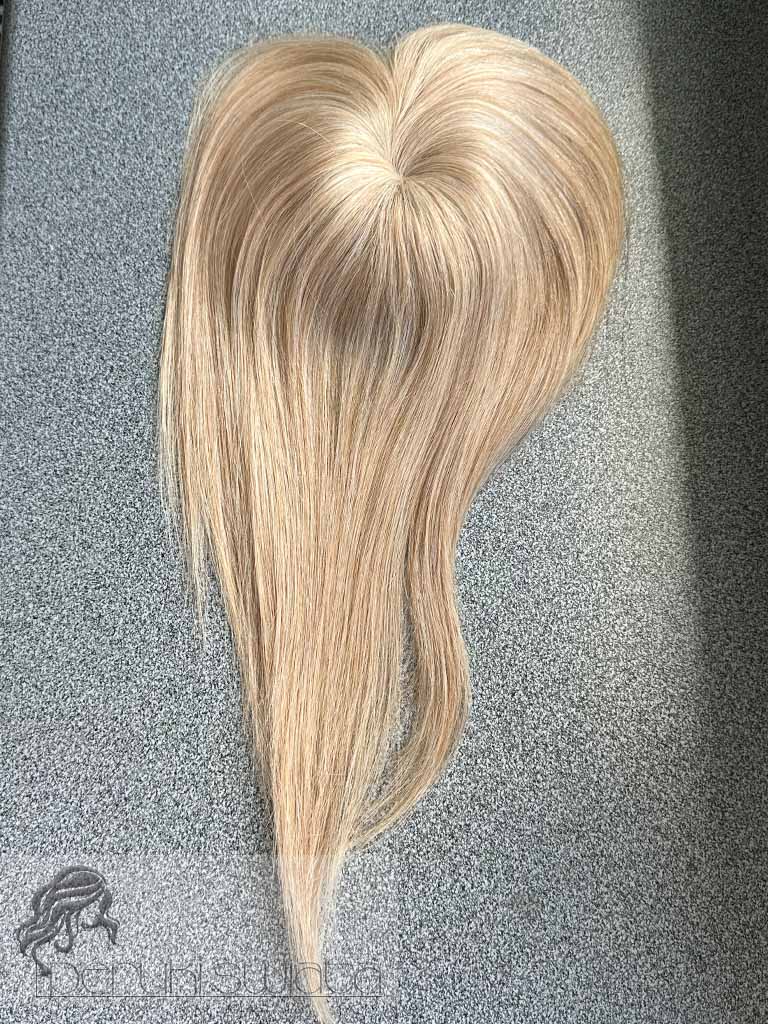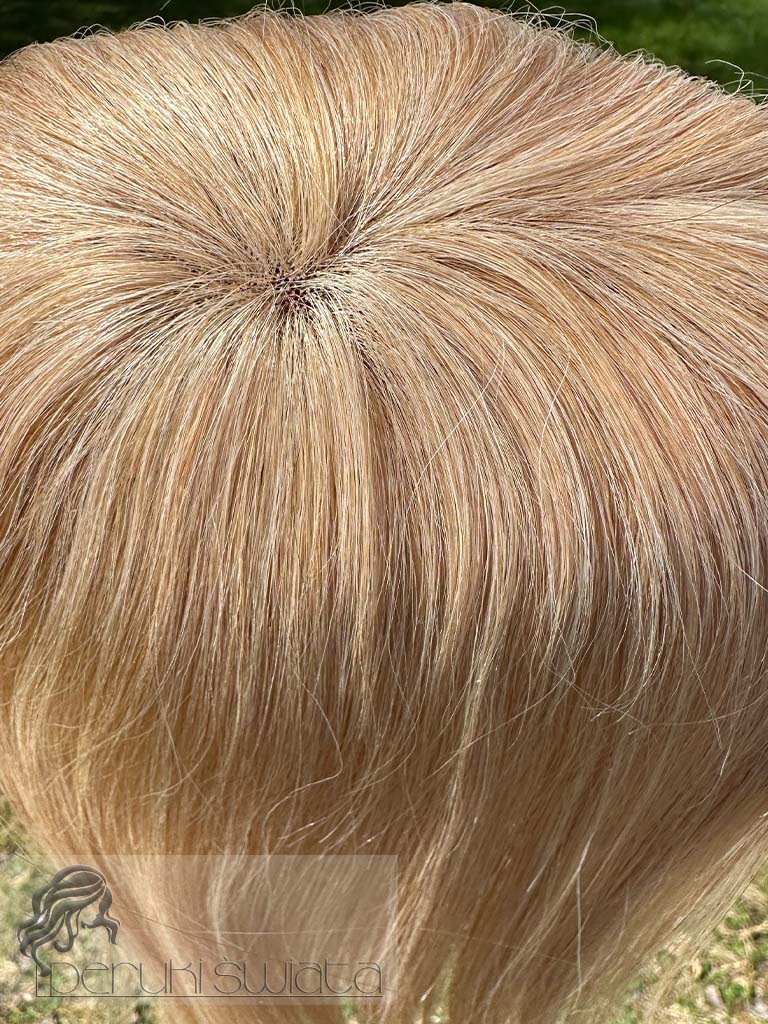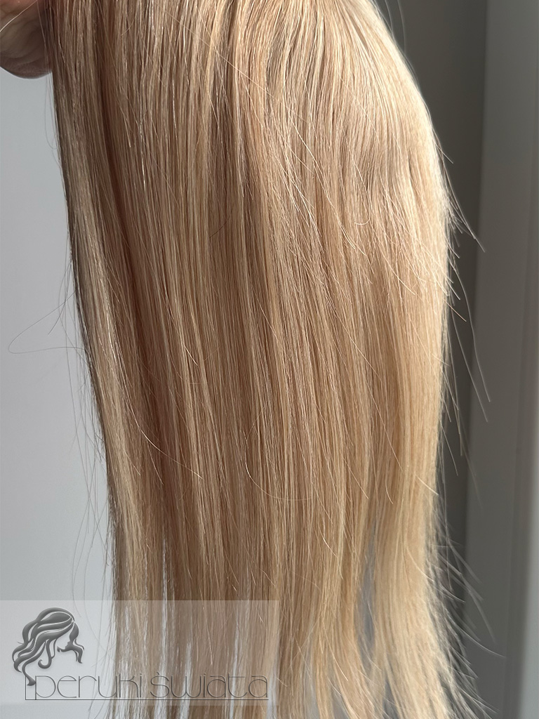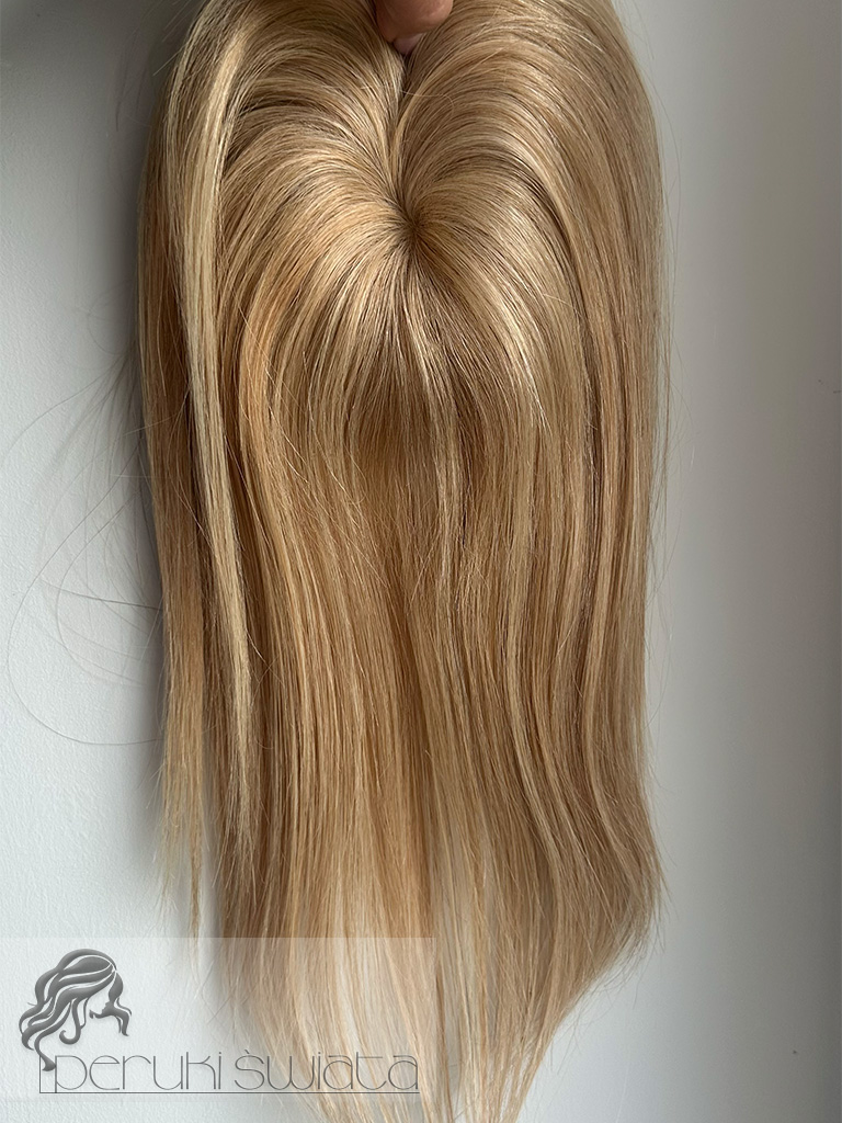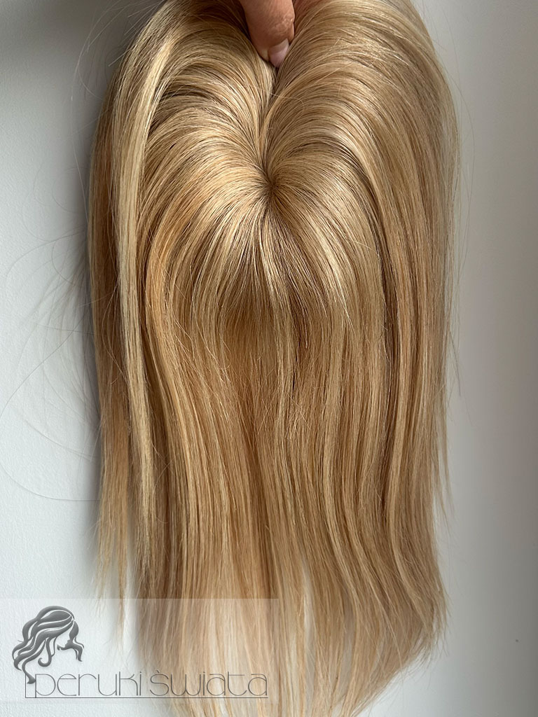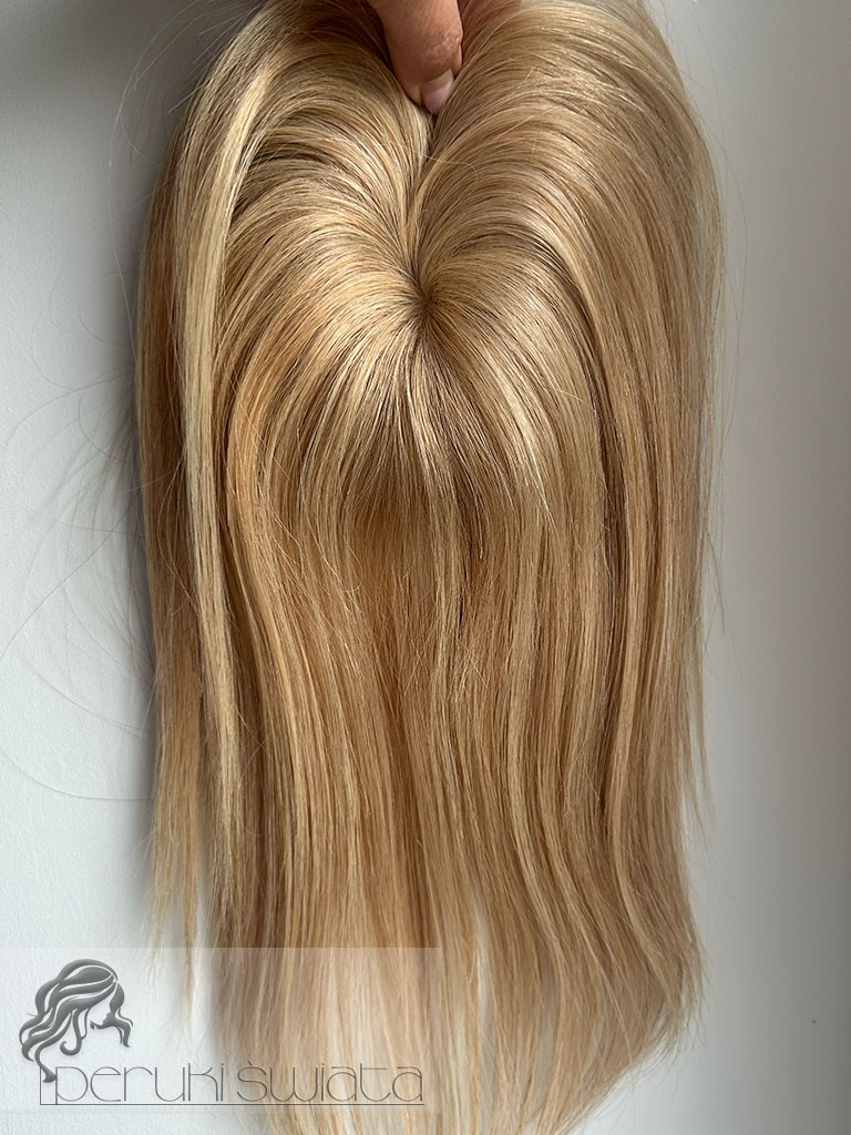 Topper hybrydowy Cornelia, włosy naturalne tkane ręcznie na siateczce, kolor: ciepły słoneczny blond