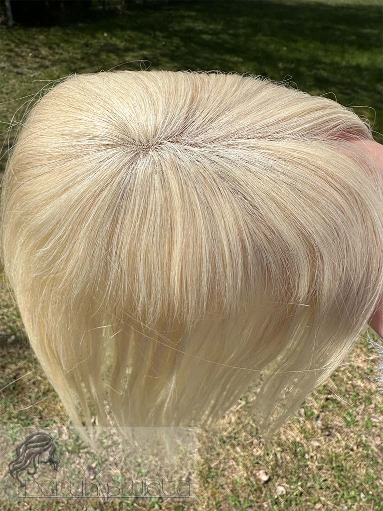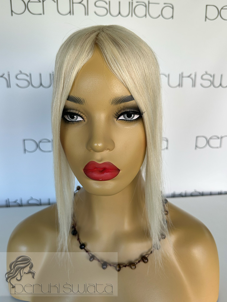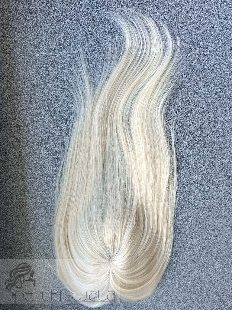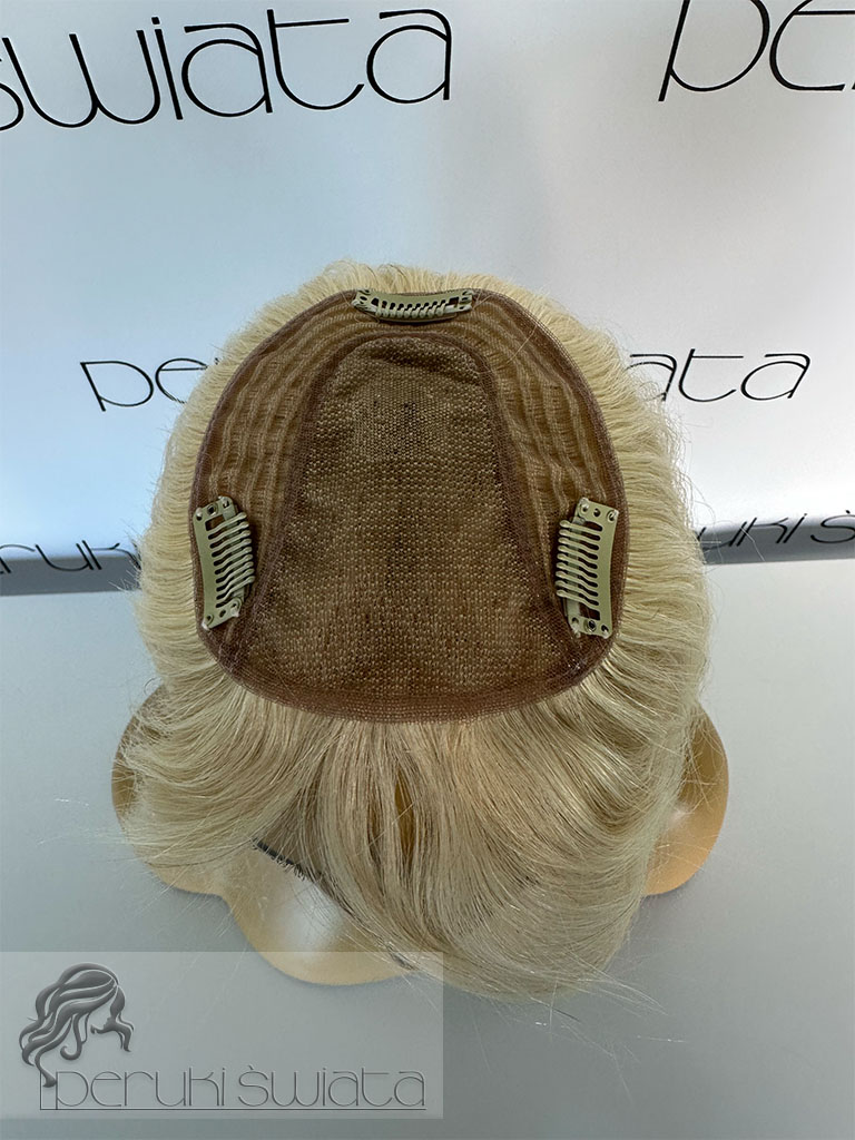 Topper hybrydowy Cornelia, włosy naturalne tkane ręcznie na siateczce, kolor: jasny blond nr 613