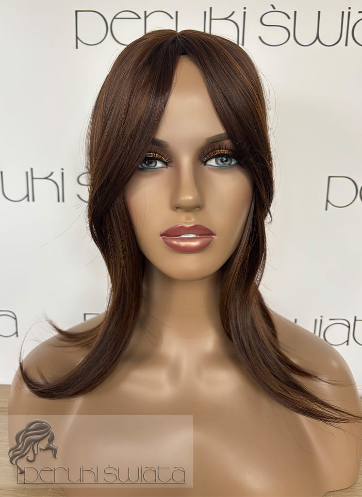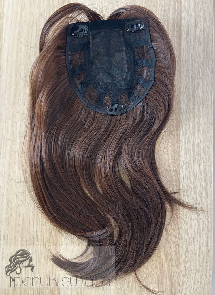 Topper/tupet syntetyczny model Shelby z kanekalonu, kolor: jasny, ciepły brąz z naturalną czernią (1B/27HL)