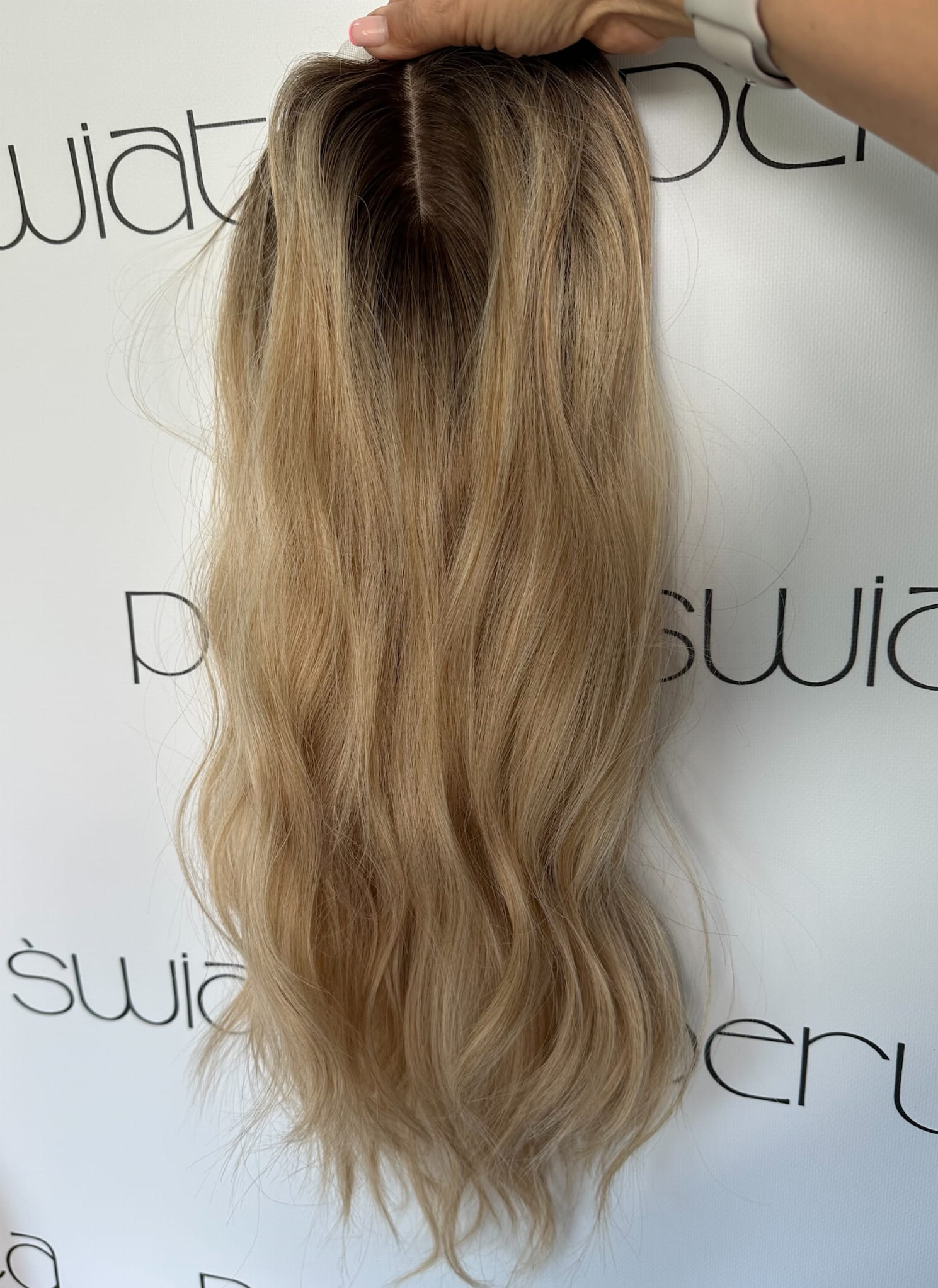 Kolor: mix słonecznych blondów na odroście w kolorze ciemnego blondu z refleksami